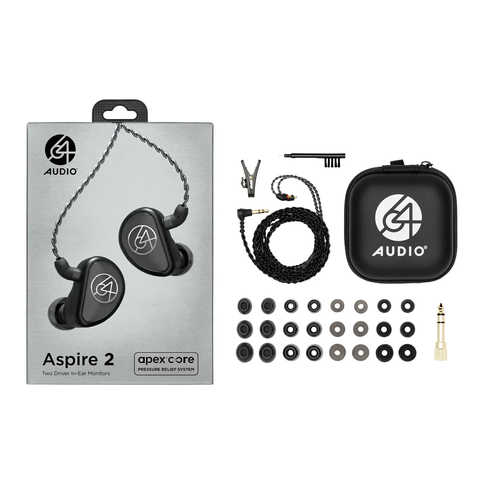 64 Audio Aspire 1 - проводные внутриканальные наушники с динамическим драйвером. Особенности: разработаны для музыкантов; динамический драйвер НЧ; СЧ/ВЧ арматурный излучатель; фирменный разъем IPX; технология сброса давления Apex Core; стальное сопло; защитная решетка; изоляция -20 дБ. Контролируйте свое выступление с помощью профессиональных универсальных внутриканальных наушников (IEM) от 64 Audio, специально разработанных для музыкантов и профессионалов живой музыки. Если вы только начинаете использовать наушники для мониторинга и не готовы к дорогой кастомной версии, нуждаетесь в запасном комплекте или просто предпочитаете универсальные устройства, серия Aspire предлагает лучший в своем классе звук и эргономику. Звук мирового класса Учитывая, что живая музыка является одним из основных критериев настройки, что мы выбираем: высокоточный студийный монитор, не требующий никаких усилий, или устройство с контурной обработкой, которое помогает музыкантам лучше слышать самих себя? Как и в случае со многими другими инструментами мониторинга, ответ находится где-то посередине. Мощные басы, которые могут с легкостью воспроизводить одни из самых сложных частот в слышимом спектре. Передние средние частоты, которые точно подняты для артикуляции в наиболее важных областях инструментов и голосов. Четкость в высокочастотном диапазоне. Это то, что действительно отличает серию Aspire от любых других устройств в своем классе, делая этот мощный звуковой сигнал идеальным сочетанием точности и музыкальности. Профессиональное наследие С 2010 года 64audio изготовили на заказ тысячи наушников-вкладышей для величайших музыкальных талантов мира. Сотрудничество с этими взыскательными и критически настроенными артистами сформировало продукты и технологические разработки, кульминацией которых стал самый доступный на сегодняшний день ассортимент универсальных IEM. Обладая той же легендарной разработкой и запатентованной технологией, Aspire является идеальной серией UIEM для всех, кто хочет СЛЫШАТЬ как профессионал. Сопло из стали Сопло из нержавеющей стали, соединенное с формованным корпусом из АБС-пластика, обеспечивает долговечность, необходимую для постоянного использования и снятия ушных вкладышей. Благодаря конструкции с фланцем и сетчатой решетке наушники не отвалятся по ошибке, а в звуковое отверстие не попадет мусор. Технология сброса давления Apex Core Запатентованная технология легко интегрируется в корпус наушников. Канал для сброса давления обеспечивает контролируемую герметичность с помощью акустических фильтров, в отличие от пневматически взаимодействующей пены в традиционном исполнении Apex. Специальный резонатор Специально разработанная акустическая структура встроена в высокочастотный балансный арматурный динамик. Уникальный по своей форме и исполнению, этот волновод повышает эффективность работы драйвера, направляя и фокусируя его энергию для получения четкого и ясного звука. Технология LID LID - это запатентованная схема, которая корректирует нелинейные импедансы динамиков, восстанавливая правильное взаимодействие с источником и сохраняя желаемую звуковую характеристику. Комплектация: наушники; кабель; прищепка; щеточка для чистки; переходник на 6.3 мм; кейс для хранения; сменные амбушюры пена; сменные амбушюры силикон; сменные амбушюры