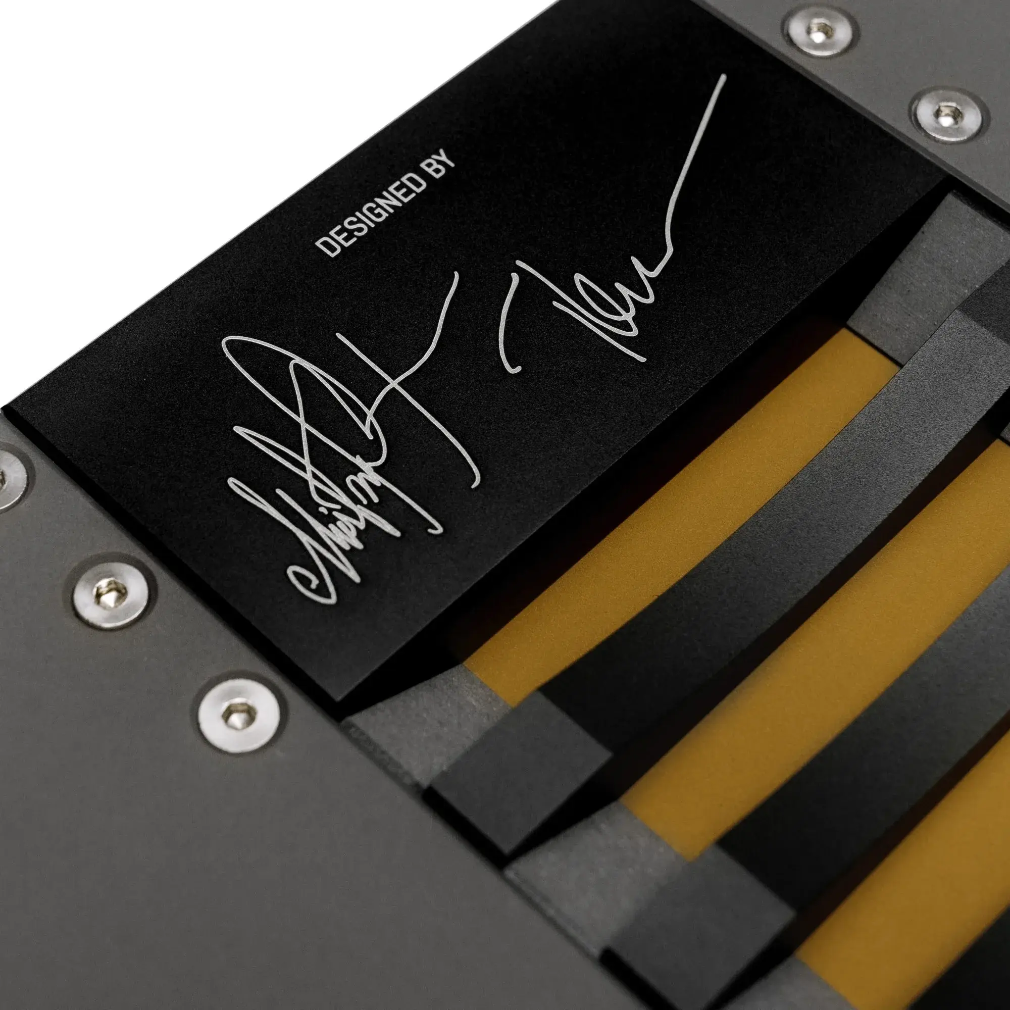 Конструкция нижней пластины состоит из медной пластины, плотной пластины из компактного ламината и титанового слоя на дне. Эта уникальная многослойная конструкция обеспечивает минимальный резонанс и поддерживает естественное и органичное звучание.