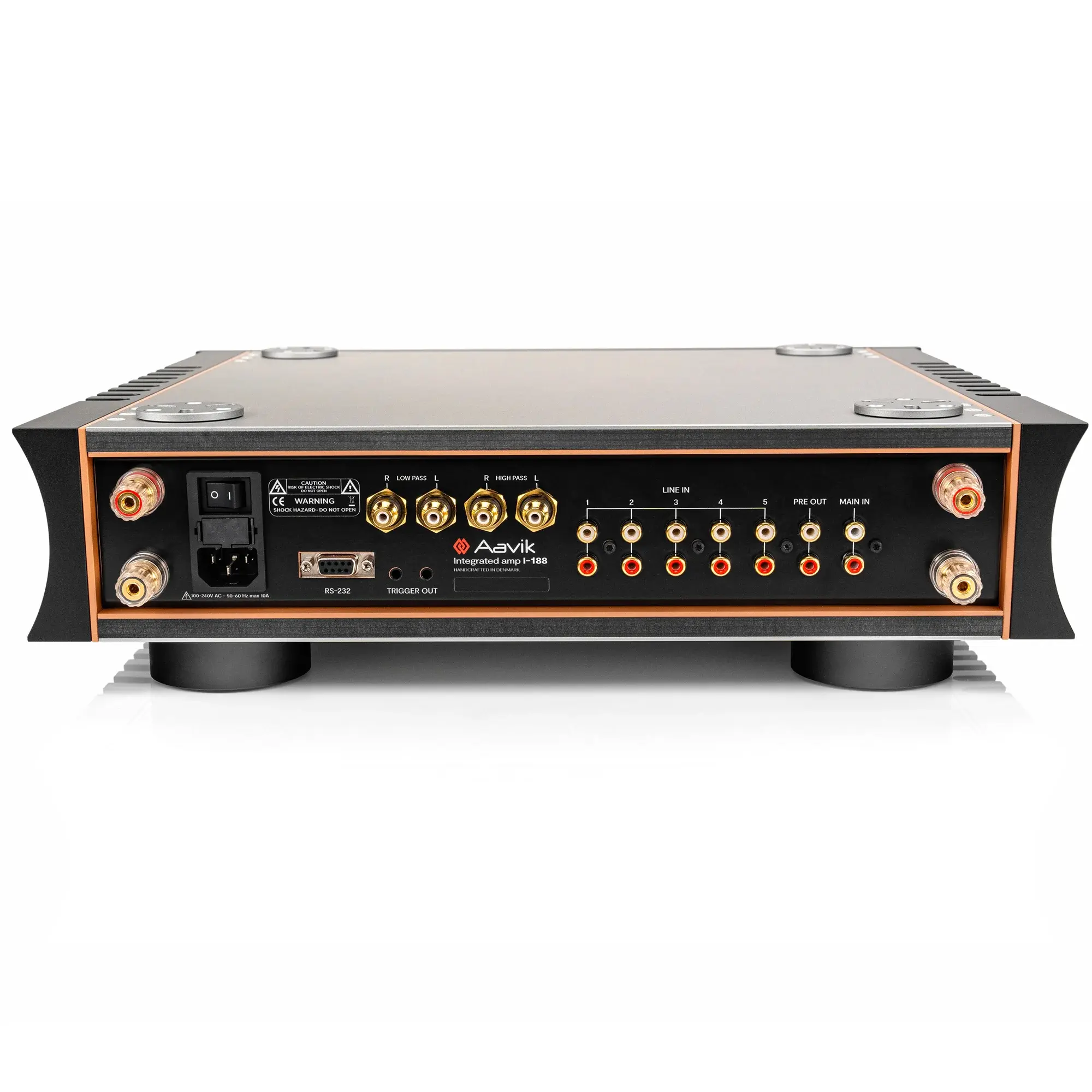 Серия I-x88 сочетает в себе элегантную функциональность и техническую изысканность. Циферблат с титановой накаткой обеспечивает плавное и точное управление, а логотип Aavik с фиксированной подсветкой создает визуальный эффект. Оптический стержень соединяет циферблат с цифровым датчиком, обеспечивая бесперебойную работу при сохранении аналогового уровня громкости. Уникальная схема инвертированного усилителя обеспечивает превосходное соотношение сигнал/шум и точную регулировку звука на любом уровне громкости.