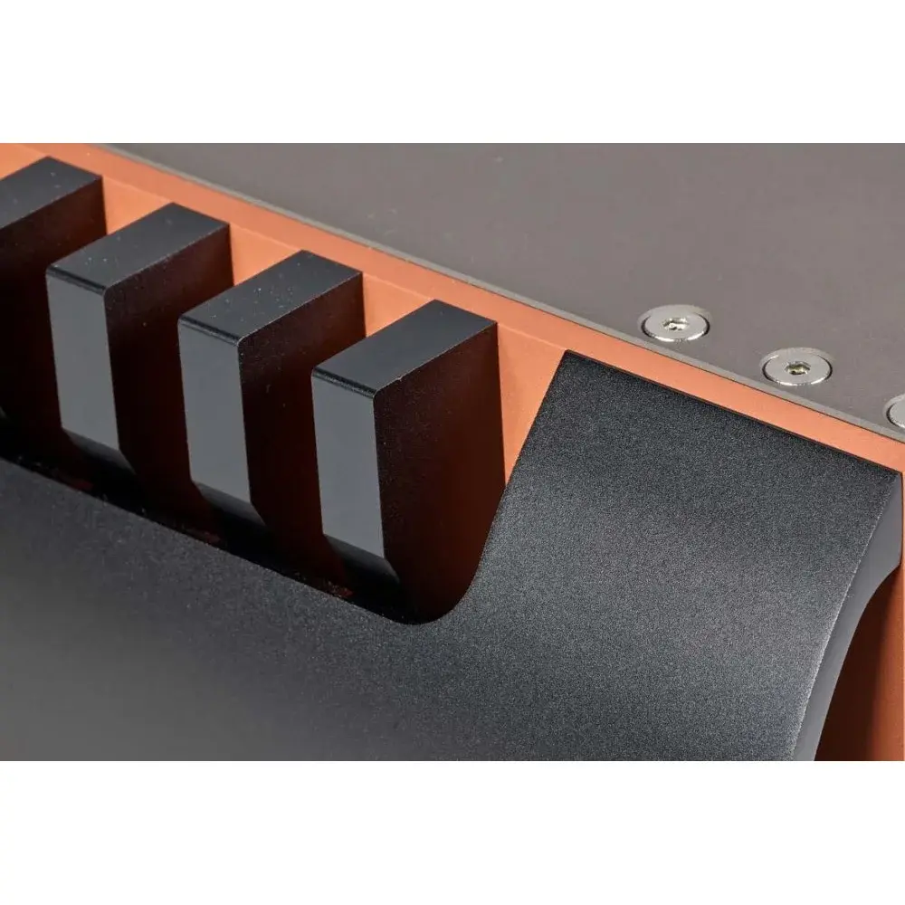 Это значительное снижение энергопотребления усилителя позволило Aavik сконструировать конденсаторы в виде блоков меньшего размера и разместить их локально, так что, каждая из восьми пар выходных транзисторов имеет свою собственную конденсаторную батарею непосредственно рядом с собой. Это означает, что ток не должен протекать по длинным жгутам проводов и длинным печатным платам. Ток всегда поступает непосредственно на выходной транзистор, что означает более короткий путь прохождения сигнала и, следовательно, меньший уровень шума. Кроме того, этот инновационный дизайн Aavik также означает, что усилители 880 не нагреваются так сильно, как обычные усилители класса А, что приводит к более высокой эффективности.