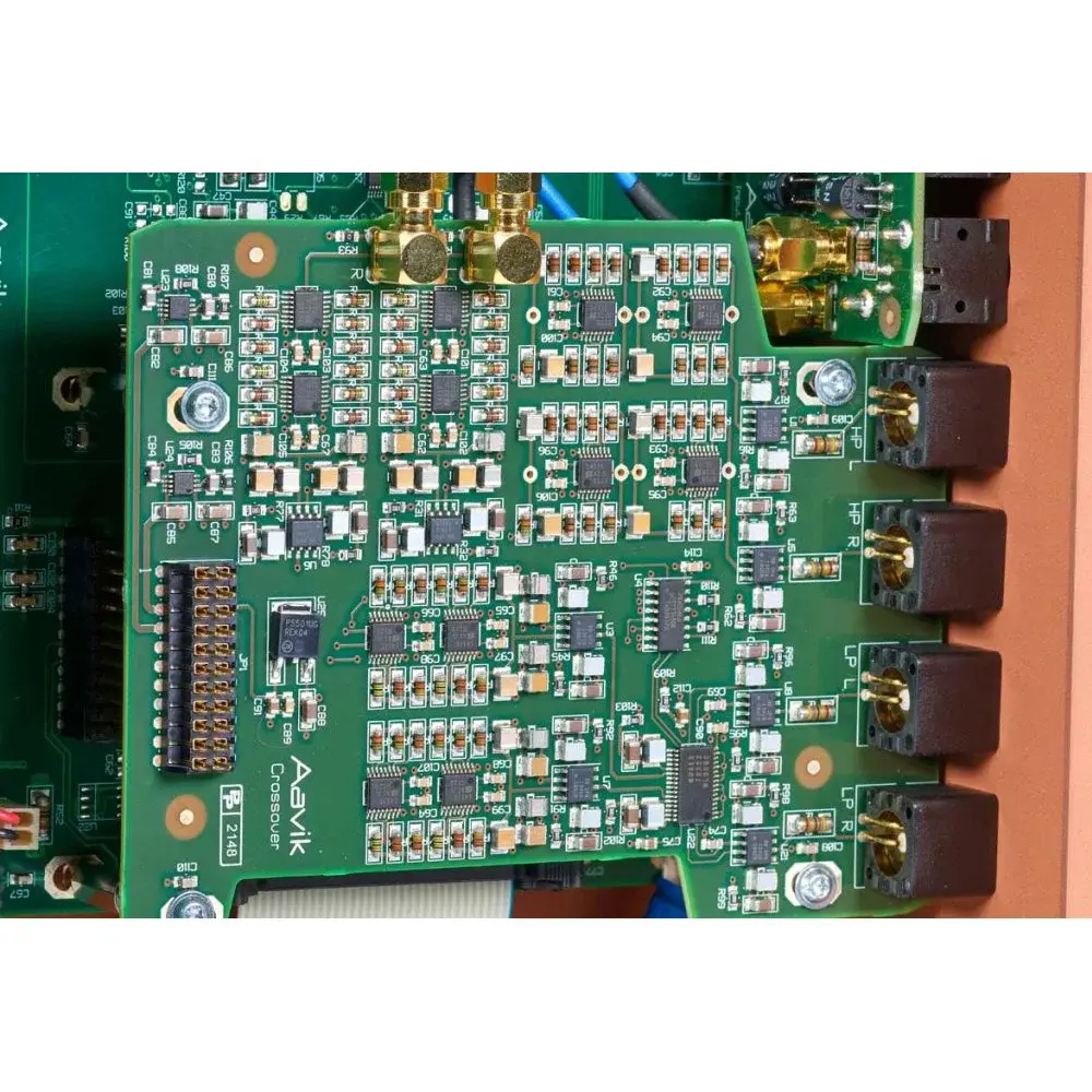 В арсенале усилителя Aavik есть и аналоговый кроссовер, позволяющий с прецизионной точностью реализовать конфигурацию трифоник с активным сабвуфером. Кроме того, этот кроссовер можно использовать для аналоговой коррекции звучания системы в соответствии с акустическими особенностями помещения прослушивания. Активный аналоговый кроссовер Aavik обеспечивает точную синхронизацию при подаче звуковых сигналов на принимающие компоненты. Это важно для того, чтобы избежать резкого и сдавленного звука. Активный кроссовер Aavik был разработан либо для очень точного управления сабвуфером, либо со встроенным фильтром нижних и высоких частот для управления системой домашнего кинотеатра 2.1.
