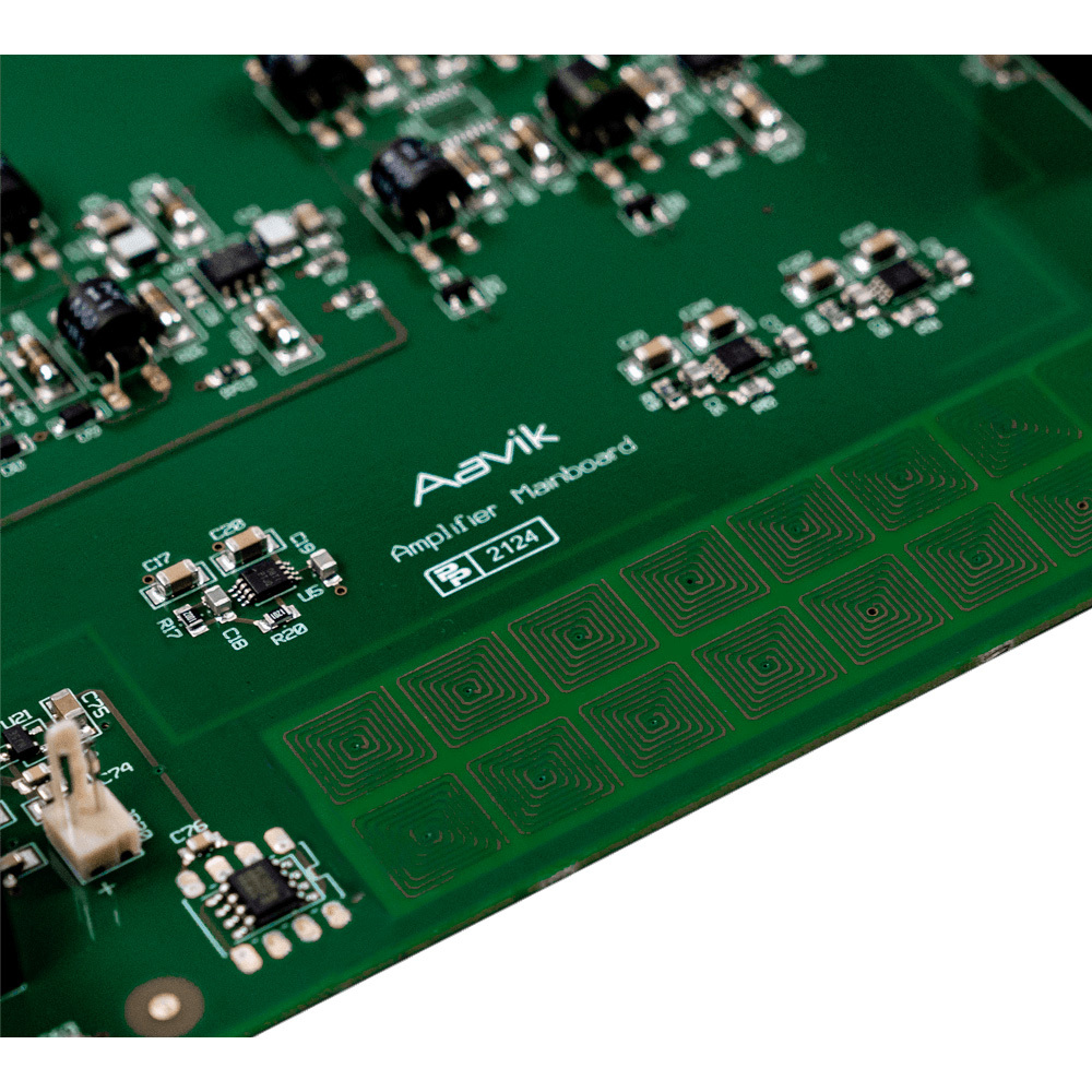 Активные квадратные катушки Tesla встроены в печатные платы – одна катушка расположена сверху, а другая - с обратной стороны. Принцип действия в точности такой же, как у активной катушки Тесла, и, следовательно, она обладает большей способностью устранять шум, чем пассивная катушка Тесла.