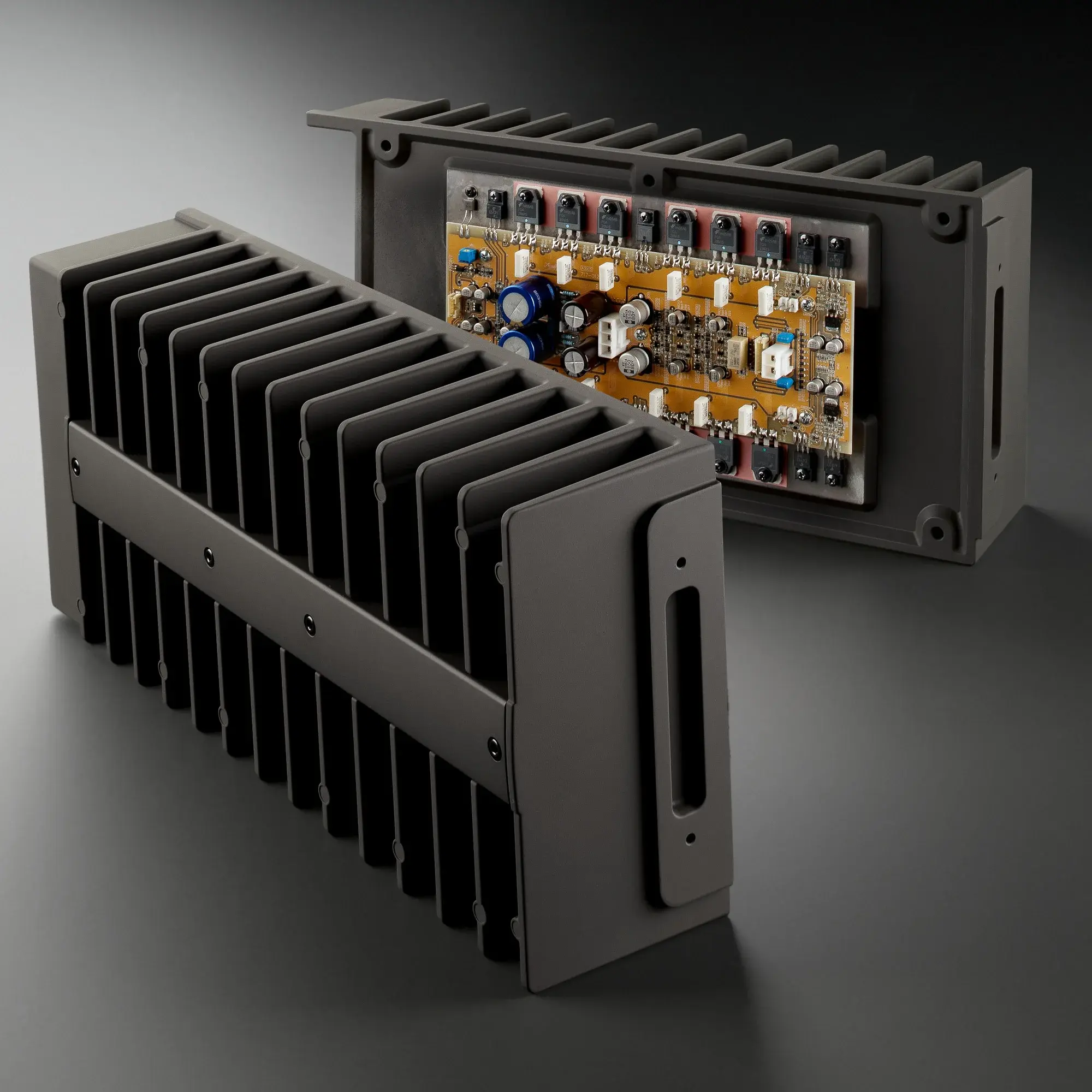Этот работающий в чистом классе А усилитель мощности, выделяющийся размером своих внешних радиаторов, создан для незамутненного наслаждения музыкой. В нем использованы только тщательно подобранные компоненты безупречного качества. Очень большой источник питания обеспечивает необходимую силовую поддержку. Аппарат спроектирован подобно измерительному усилителю, весь сигнальный тракт, от входа до выхода, построен по симметричной схеме. Еще большее совершенство придает схеме усиления топология MCS+, которая значительно улучшает отношение сигнал-шум, КНИ и другие характеристики.