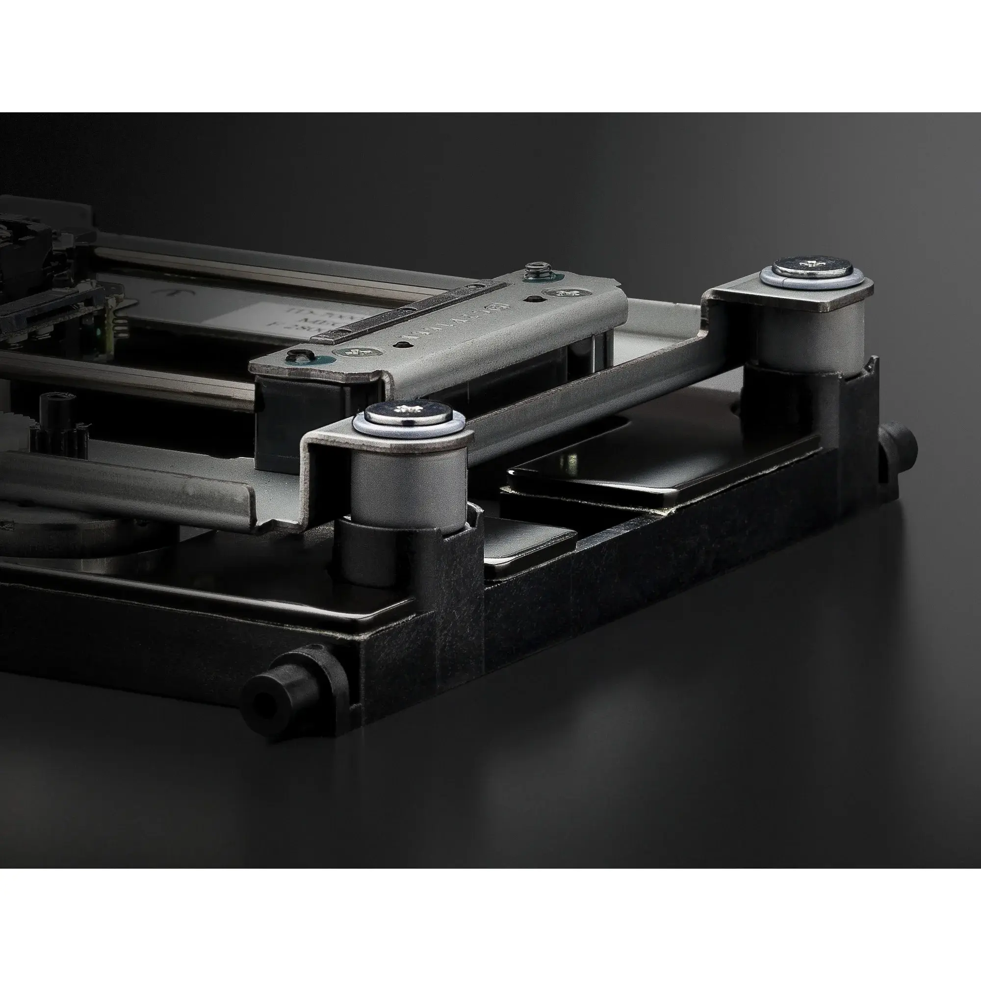 Элегантный и тщательно продуманный лоток для дисков, изготовленный из алюминиевого блока и затем обработанный твердым анодированным алюминием с матовой обработкой, оснащен высококачественными подшипниковыми валами, которые плавно и бесшумно открываются и закрываются.