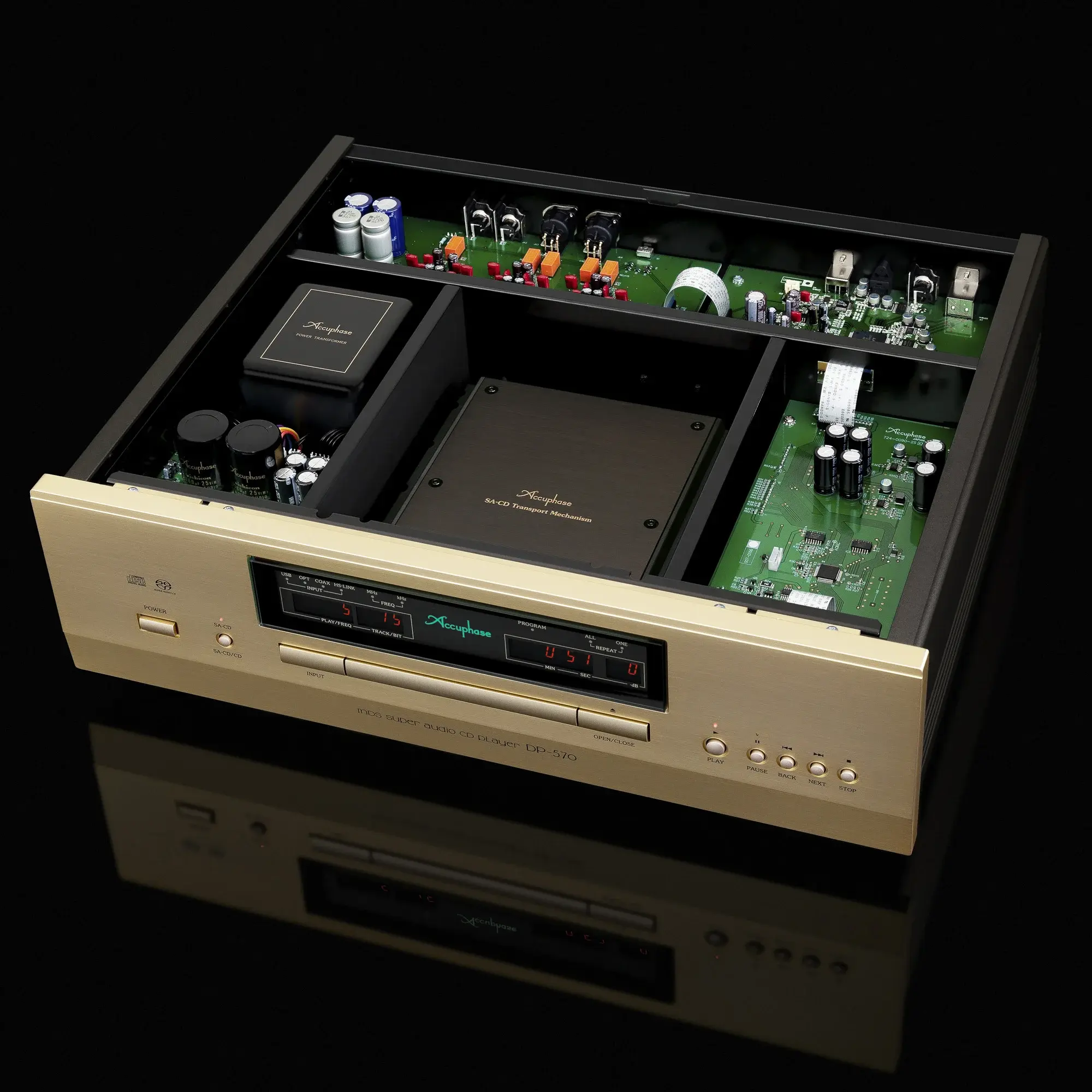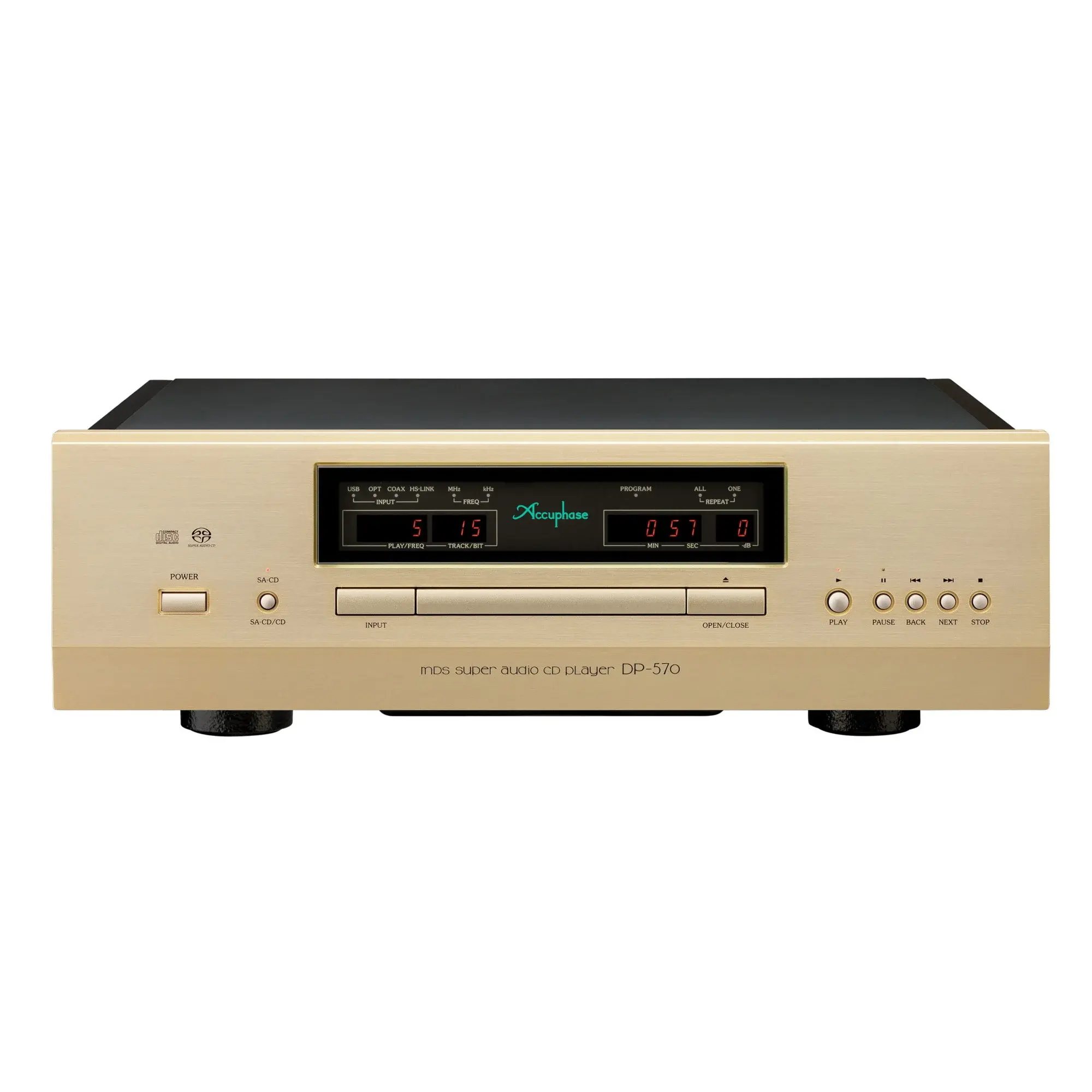 Accuphase DP-570 оснащен бесшумной и плавной загрузкой дисков, высокой жесткостью и низким центром тяжести SA-CD/CD-дисков привод значительно улучшает читаемость, в то время как цифроаналоговый преобразователь типа MDS+ с четырьмя параллельными цепями точно считывает информацию с диска и преобразует аналоговые сигналы. Он также поддерживает цифровое соединение с фирменным устройством Digital Equalizer и предоставляет функцию программируемого списка воспроизведения, которая позволяет вам наслаждаться прослушиванием в том порядке, в котором вы предпочитаете. Наслаждайтесь прослушиванием на DP570 - следующем шаге в стремлении к идеальному воспроизведению дисков.