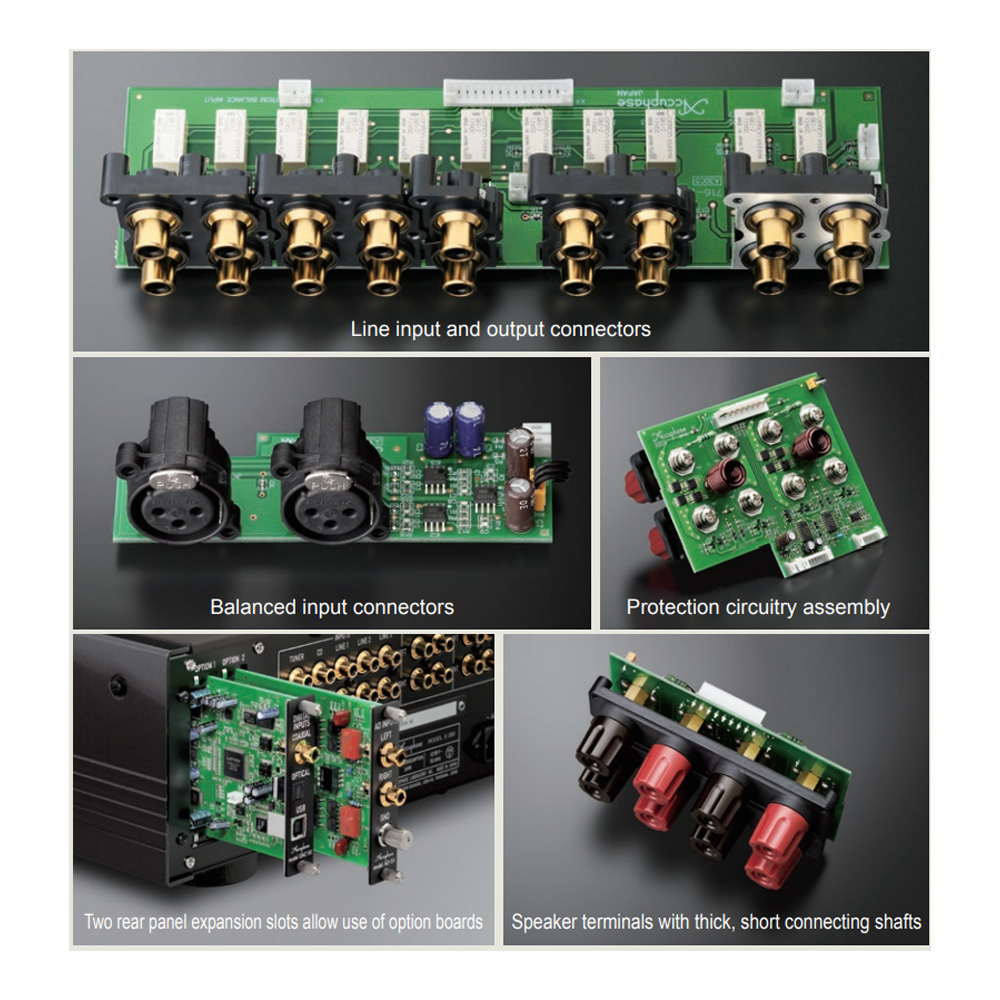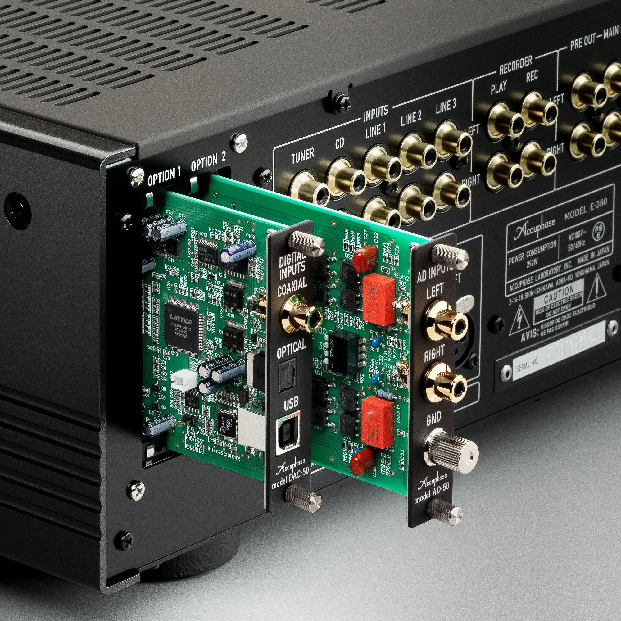 Accuphase E-380 - интегральный усилитель стерео. Усовершенствованная система регулировки громкости AAVA позволяет наслаждаться музыкой на любом уровне громкости без малейшего ухудшения качества звука. Секция усиления мощности использует принцип прецизионного усилителя. Конструкция выходной схемы с низким сопротивлением раскрывает весь потенциал каждого динамика. Для расширения возможностей можно добавить две опциональные платы.