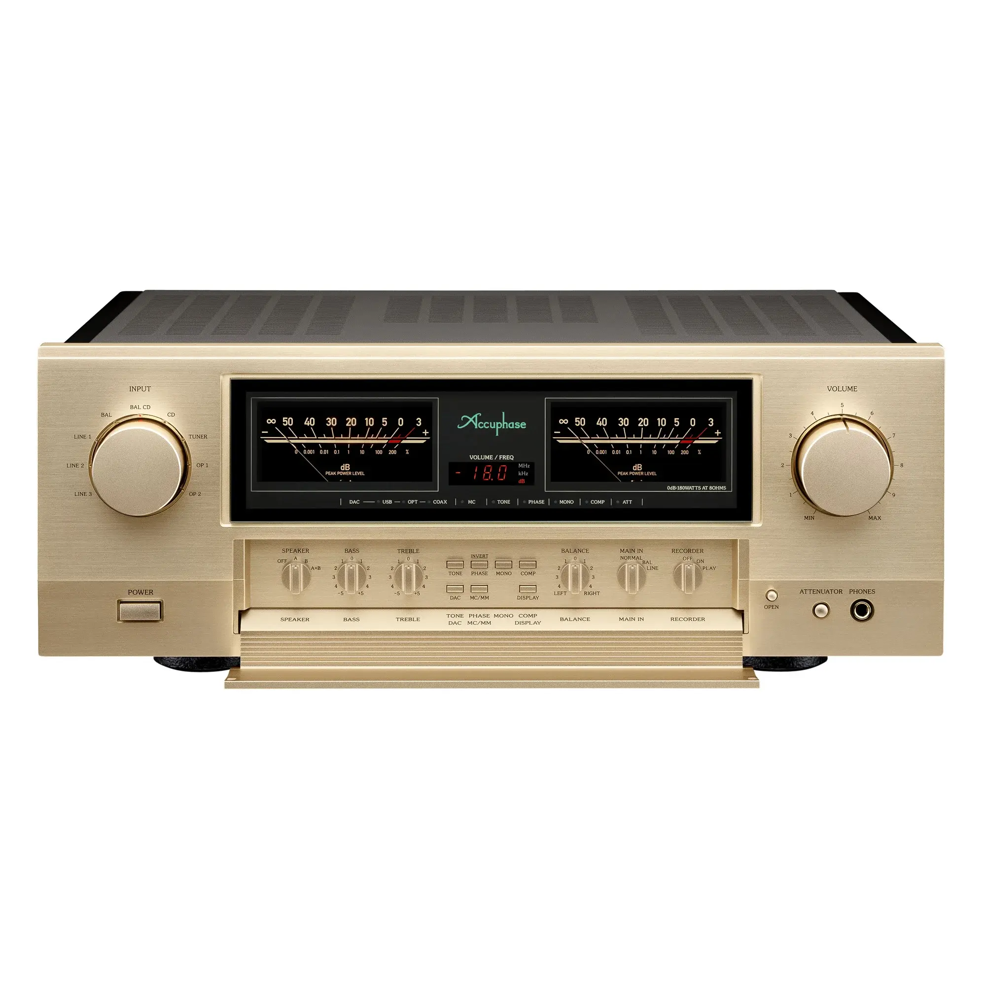 Регулятор громкости AAVA – это революционный тип регулятора громкости, который полностью устраняет любые переменные резисторы в сигнальном тракте, вместо этого используя комбинацию из 16 вольт-амперных преобразователей с различным коэффициентом усиления. В отличие от обычных регуляторов громкости, музыкальный сигнал не ослабляется поворотным резистором, что позволяет поддерживать низкие искажения и оптимальное соотношение сигнал/шум во всем диапазоне громкости. E-4000 использует максимальное усиление в 4 параллельных рядах и схемы вторичного вольтамперного преобразователя, расположенные в 2 параллельных ряда, что удваивает суммарный выходной ток и уменьшает сопротивление цепи вдвое для дальнейшего снижения уровня шума.