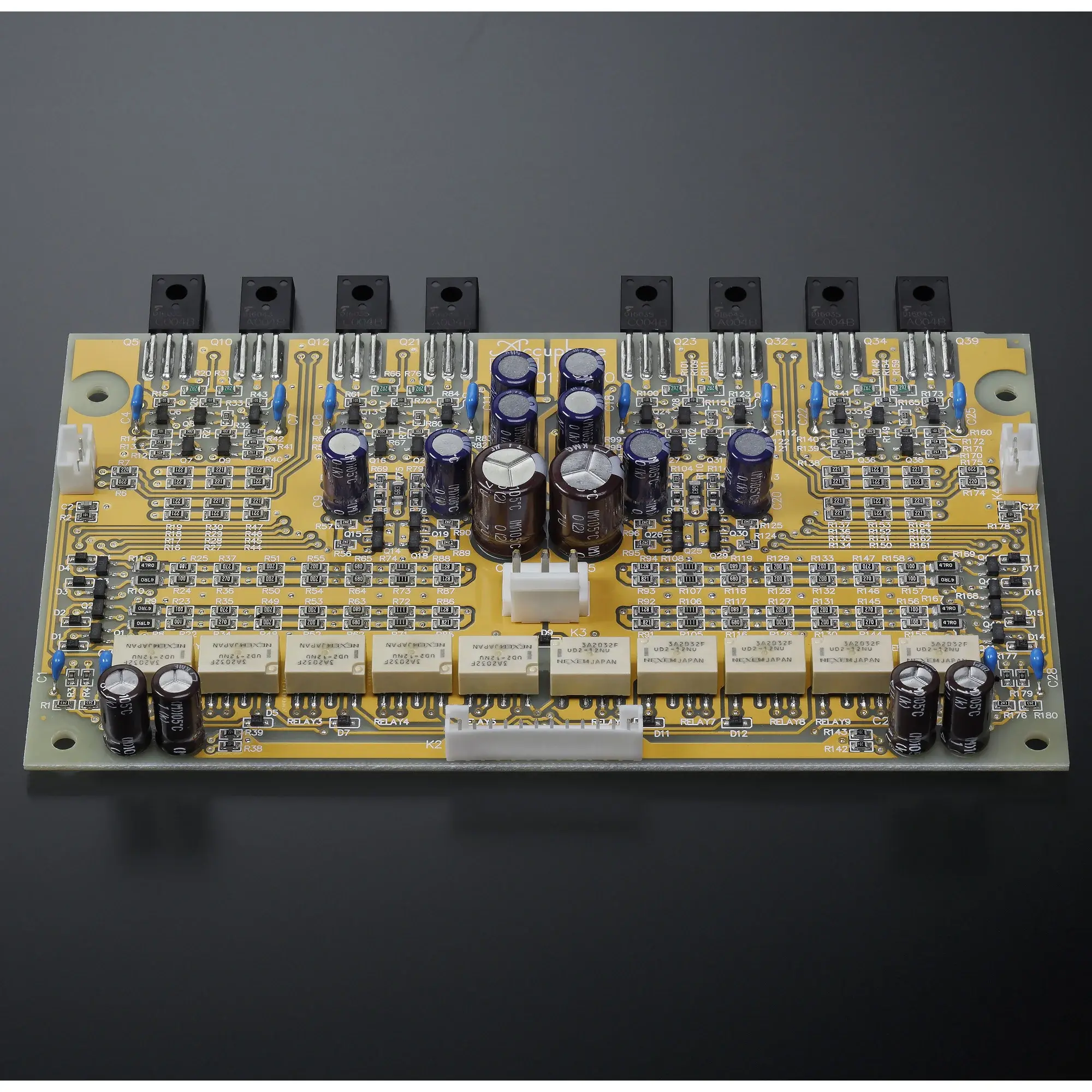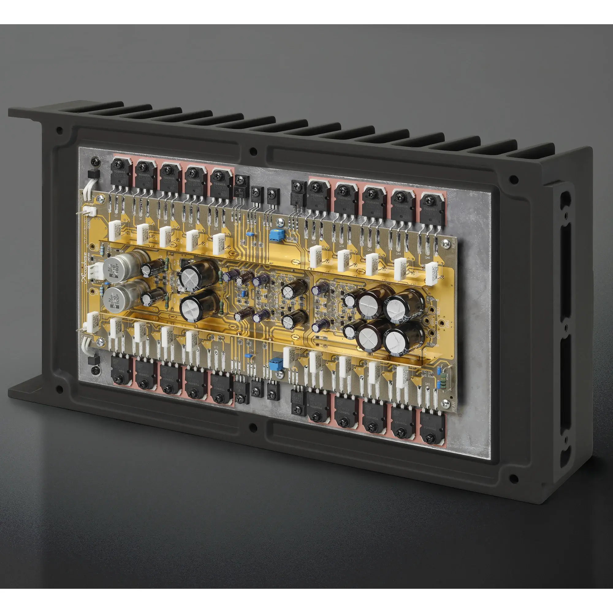 Трехступенчатая конфигурация Darlington, которая управляет конечным выходным каскадом с помощью двухступенчатой схемы, сводит к минимуму любое негативное влияние на выходной каскад противодействующих электродвижущих сил динамиков.