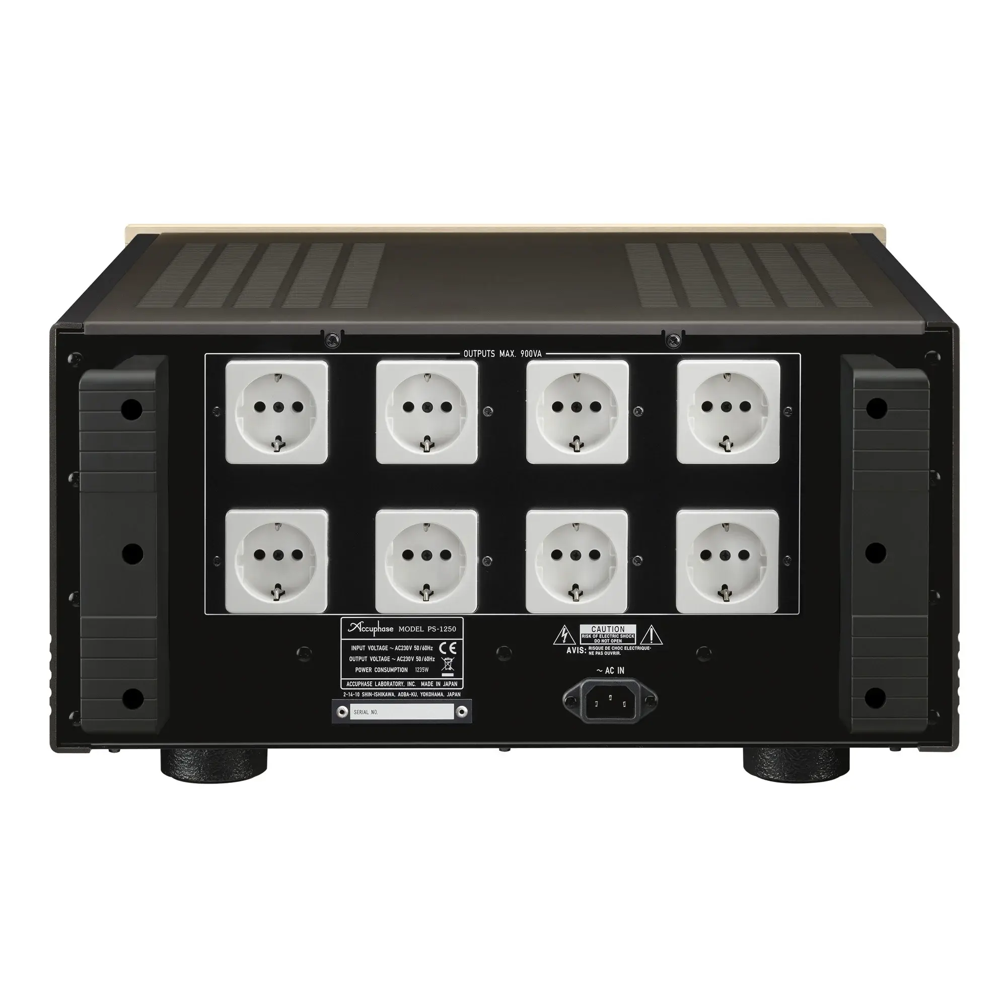 PS-1250 оснащен мощным источником питания, состоящим из большого экранированного тороидального силового трансформатора и двух больших фильтрующих конденсаторов (22 000 мкФ/90 В). PS-550 оснащен несколькими выходными разъемами для подключения множества компонентов аудиооборудования.