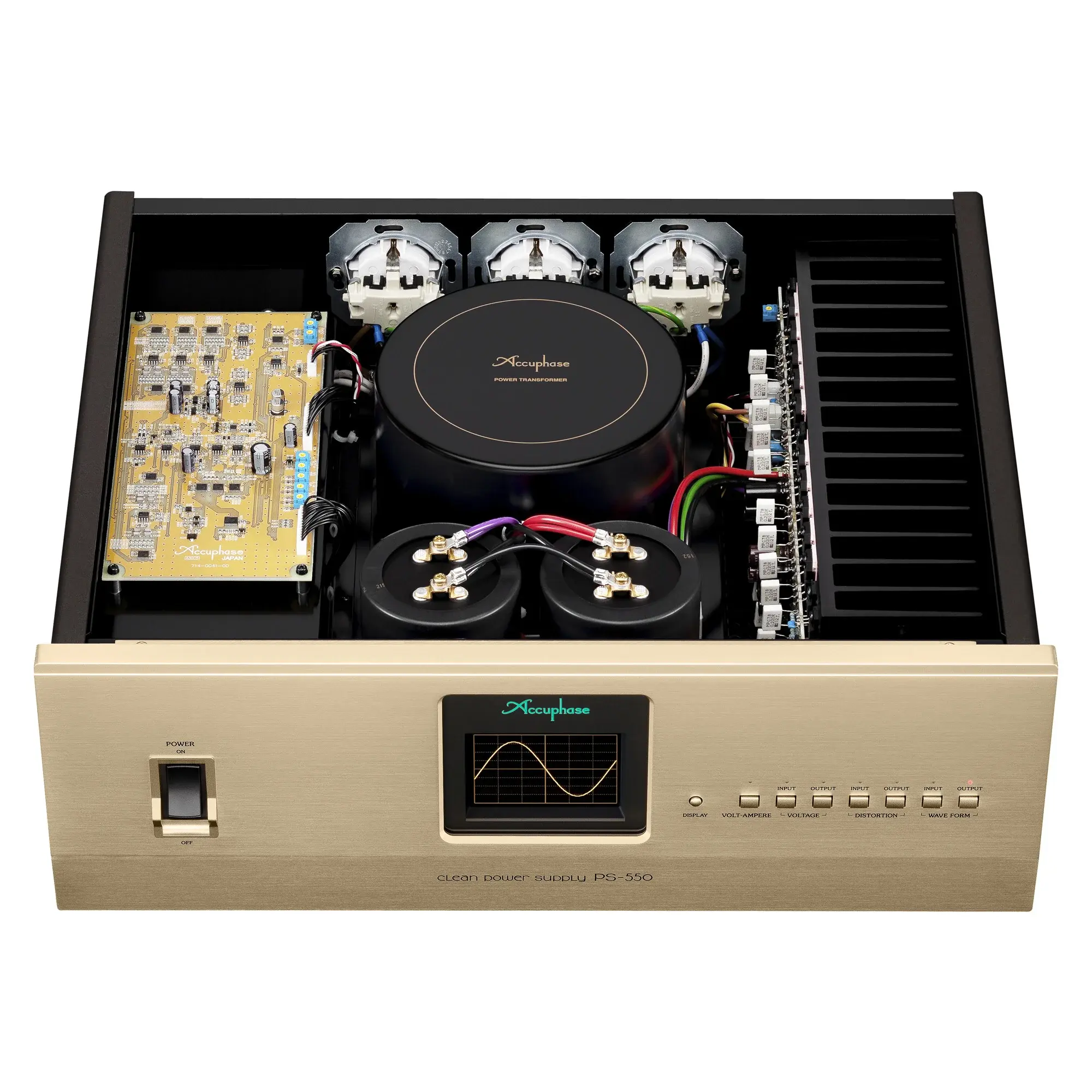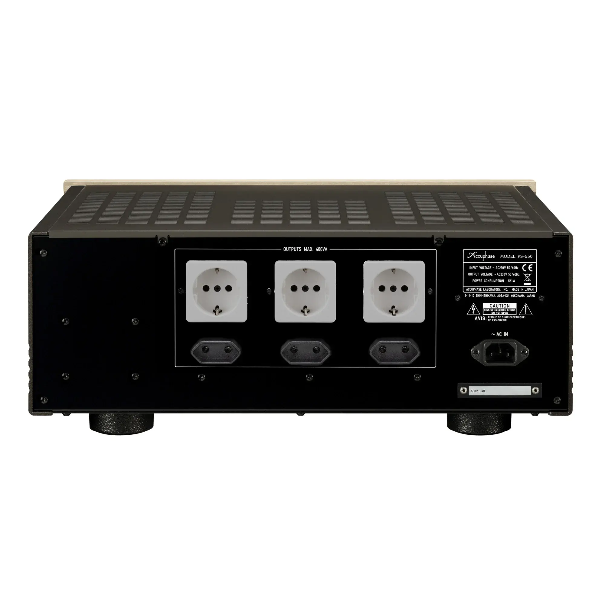 PS-550 оснащен мощным источником питания, состоящим из большого экранированного тороидального силового трансформатора и двух больших фильтрующих конденсаторов (22 000 мкФ/90 В). PS-550 оснащен несколькими выходными разъемами для подключения множества компонентов аудиооборудования.