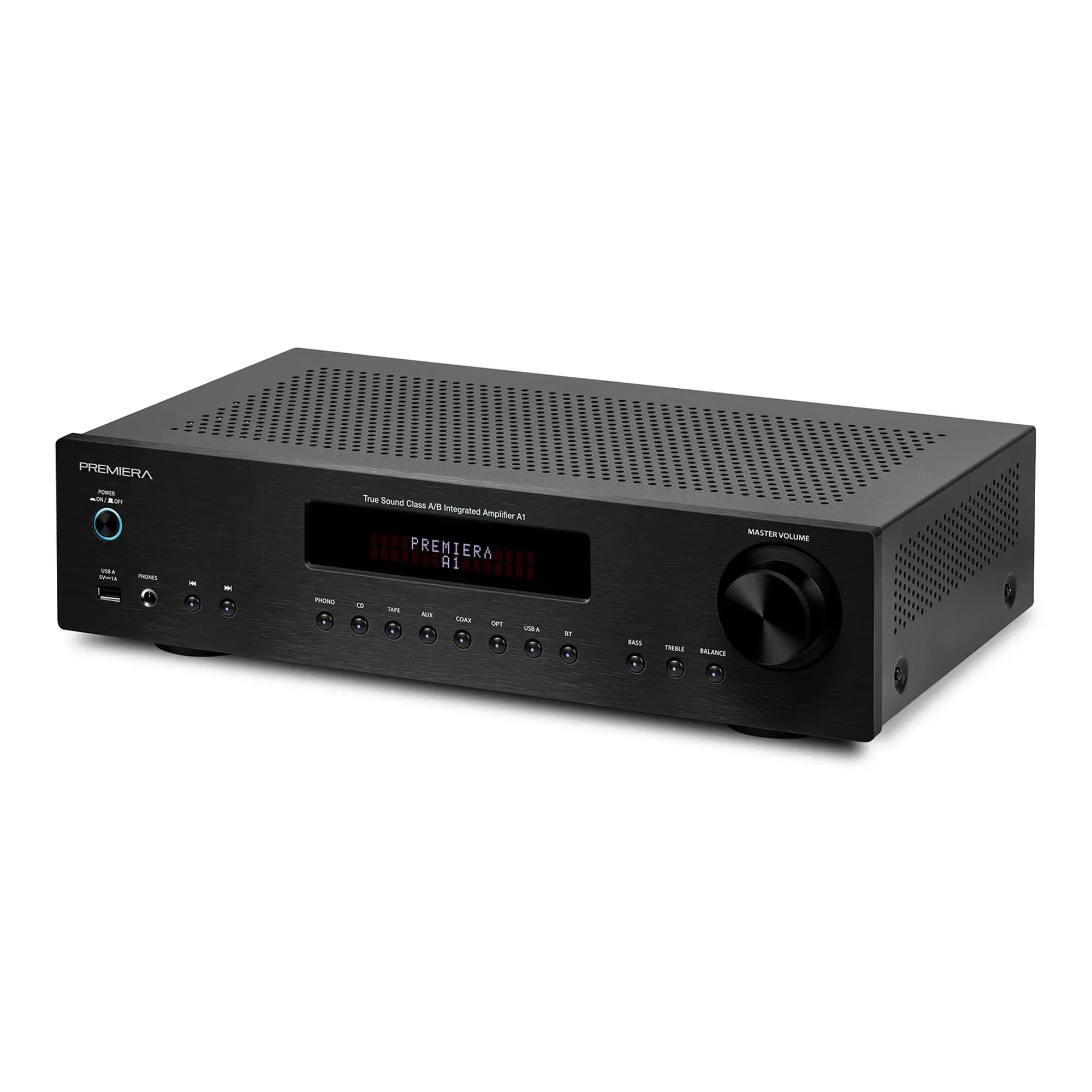 Premiera A1 – современный интегральный Hi-Fi стереоусилитель класса AB со встроенным ММ-фонокорректором, ЦАП и Bluetooth с номинальной выходной мощностью 51 Вт на канал. Удобное управление и простоту настроек обеспечивает универсальный регулятор на лицевой панели усилителя и пульт дистанционного управления. Благодаря широким возможностям подключения, устройство можно использовать почти с любыми источниками для воспроизведения – как аналоговыми, так и цифровыми.