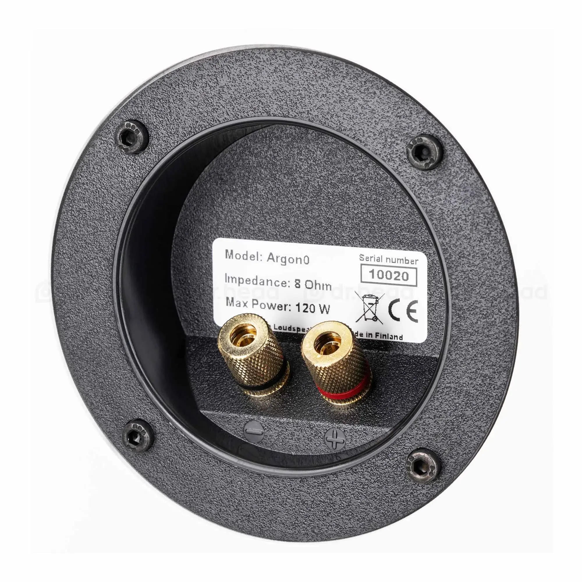 Вентилируемый корпус Argon0 имеет высоту всего 25 см и вмещает пару динамиков с металлическими конусами: 114-миллиметровый алюминиевый средне частотный динамик в сочетании с 25-миллиметровым титановым купольным твитером, который размещен в глубокой лицевой панели для достижения наилучших звуковых характеристик.
