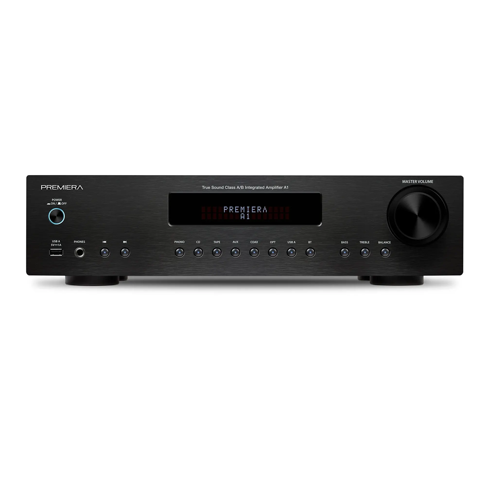 Premiera A1 – современный интегральный Hi-Fi стереоусилитель класса AB со встроенным ММ-фонокорректором, ЦАП и Bluetooth с номинальной выходной мощностью 51 Вт на канал. Удобное управление и простоту настроек обеспечивает универсальный регулятор на лицевой панели усилителя и пульт дистанционного управления. Благодаря широким возможностям подключения, устройство можно использовать почти с любыми источниками для воспроизведения – как аналоговыми, так и цифровыми.