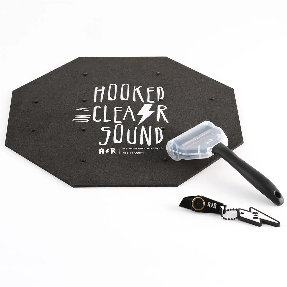 Набор Rock Legacy Edition №4 так же предназначен для ухода за винилом, как и №2, но концептуально отличается. В четвертый набор положили мат (готовая поверхность) для очистки винила, силиконовый ролик для деликатного ухода за пластинкой и нож Sax.