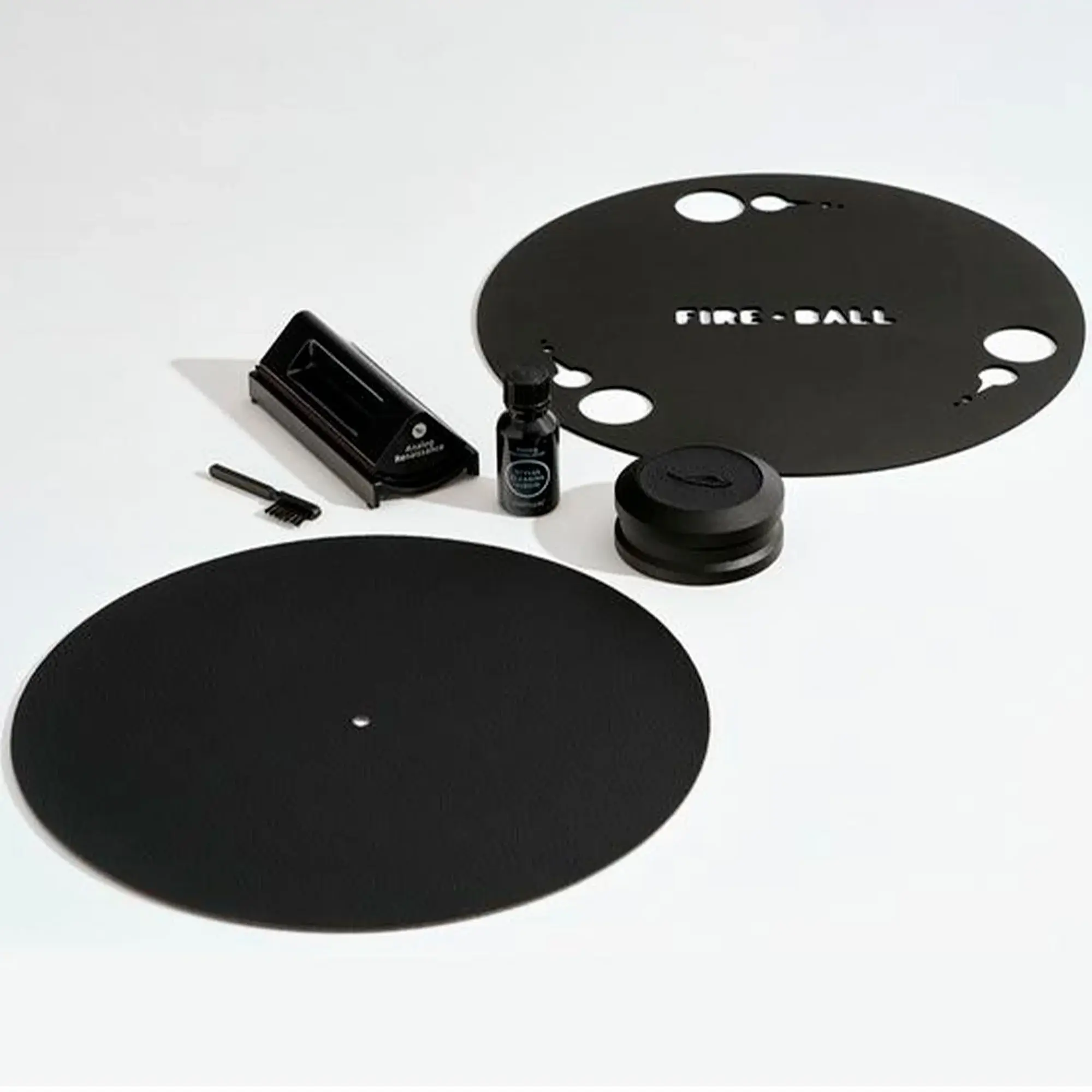 Набор для апгрейда проигрывателя Turntable Designer создан для виниломанов, для которых важен не только звук системы, но и её внешний облик — гармоничное сочетание с интерьером или яркое цветовое пятно. Это концептуальный набор для создания собственного стиля в дизайне проигрывателя и рабочего пространства вокруг него. Он подчеркнёт цвет аудиосистемы (чёрный или белый) и включает аксессуары, улучшающие звучание винила, а также базовые средства для поддержания пластинок и иглы в чистоте. В состав набора входит прижим Mjollnir Clamp для улучшения контакта пластинки с диском, антистатическая вельветовая щётка Record Velvet Brush с щёточкой для её очистки, кожаный слипмат Platter’n’Better и слипмат EVOMAT Fireball для замены штатного, а также бесспиртовая жидкость для чистки иглы звукоснимателя Stylus Cleaning Liquid. Набор позволяет сразу решить несколько задач: улучшить качество воспроизведения, визуально выделить проигрыватель и содержать пластинки и иглу в чистоте. Комплектация: прижим Mjollnir Clamp; антистатическая щётка Record Velvet Brush (+щёточка для очистки); слипмат EVOMAT Fireball; кожаный cлипмат Platter’n’Better; жидкость для чистки иглы Stylus Cleaning Liquid; документация.