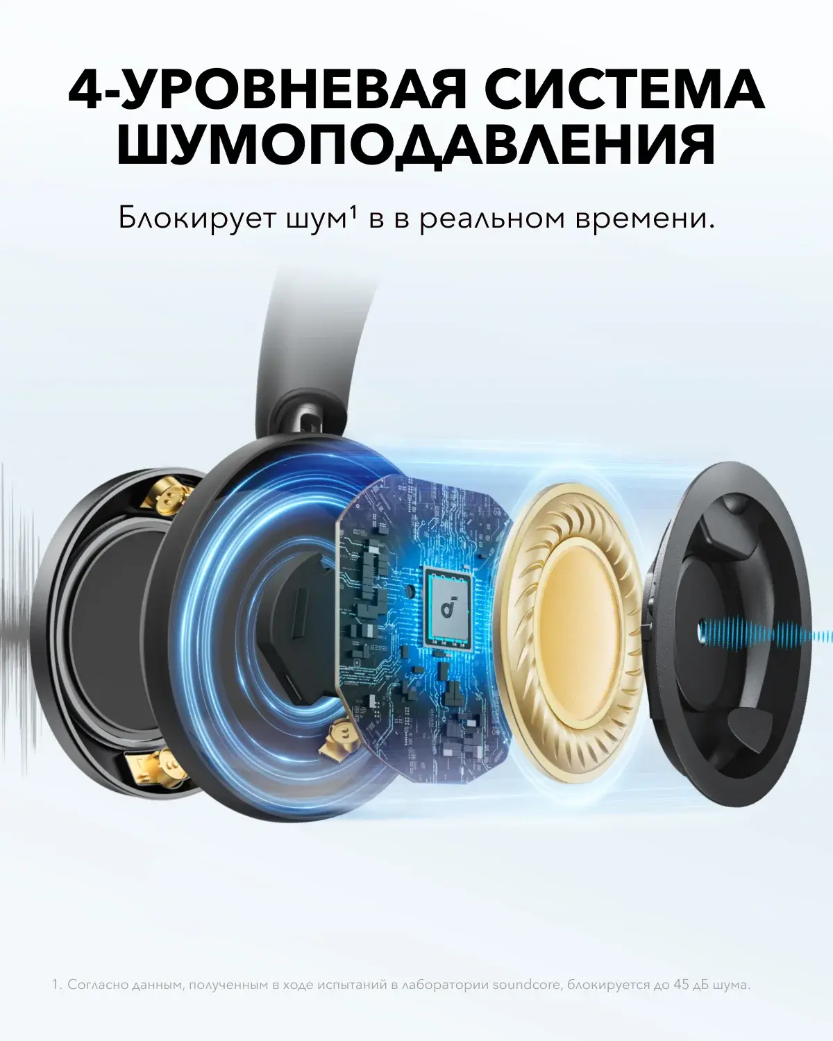 4-ступенчатая система шумоподавления. Наушники блокируют шум в разных частотных диапазонах в реальном времени;