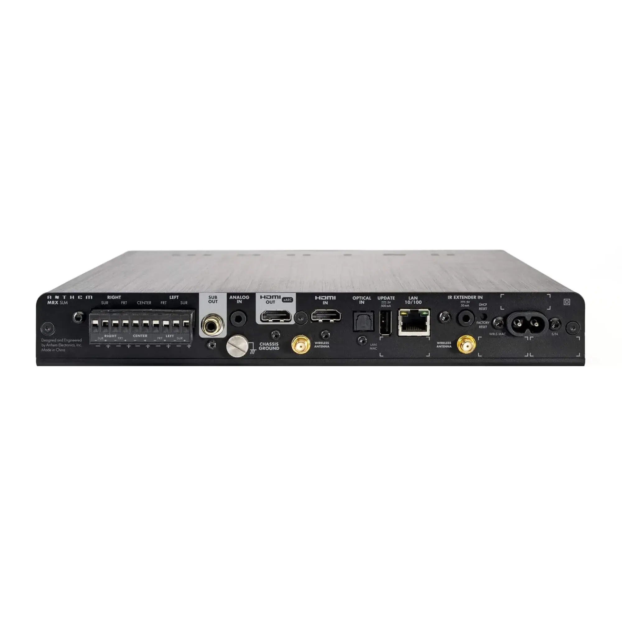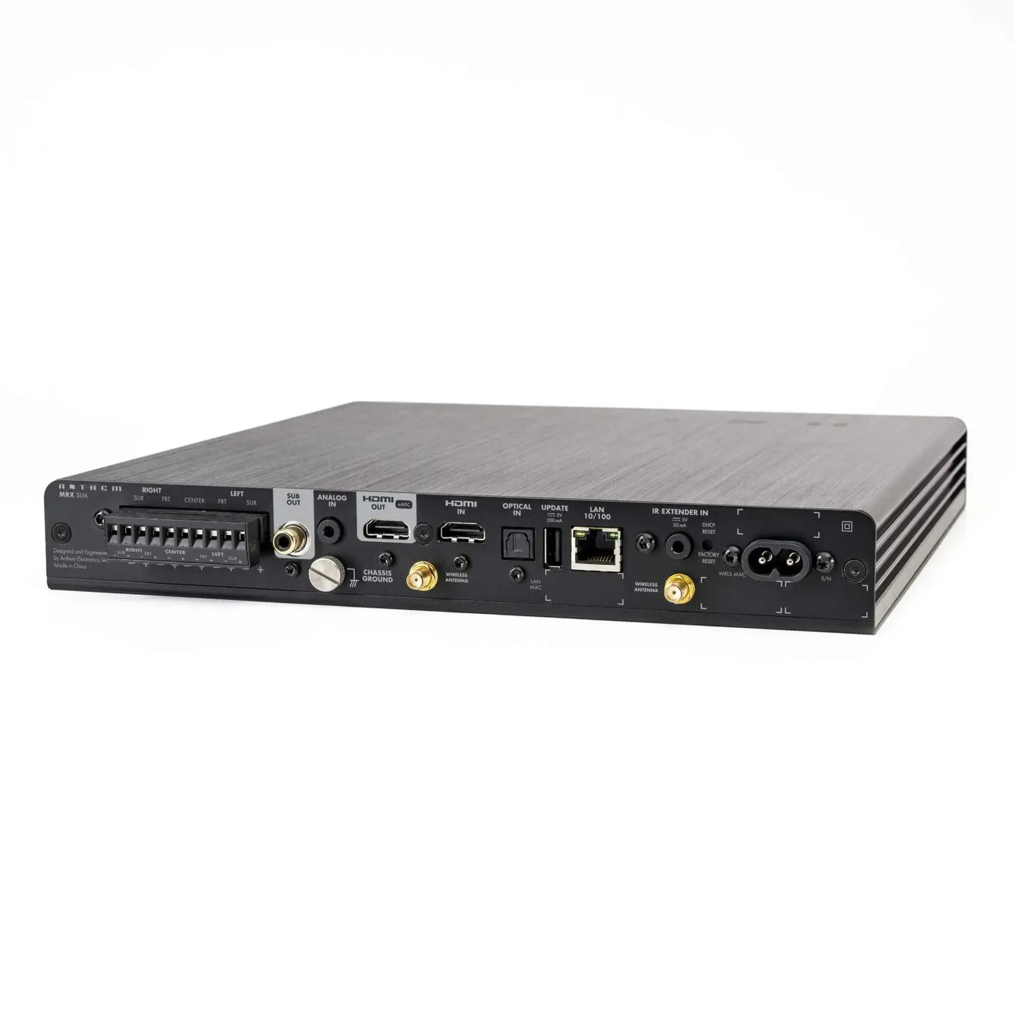 Anthem MRX SLM — компактный AV ресивер, предназначенный для индивидуальной интеграции. MRX SLM призван решить распространённую проблему, с которой сталкиваются интеграторы, — поиск оптимального места для аудиоприёмника в развлекательной системе.