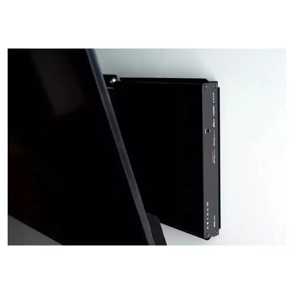 Благодаря тонкому профилю это высококачественное устройство можно незаметно разместить за телевизором с плоским экраном, в шкафу или даже на стене. MRX SLM поставляется с монтажным кронштейном, который упрощает установку. Такая гибкость позволяет вам наслаждаться первоклассным качеством звука, сохраняя при этом чистоту и организованность вашей развлекательной программы. Кроме того, он легко устанавливается в любую стандартную AV-стойку, что делает его идеальным выбором как для профессиональных монтажников, так и для энтузиастов, которым нужна аккуратная и организованная установка.