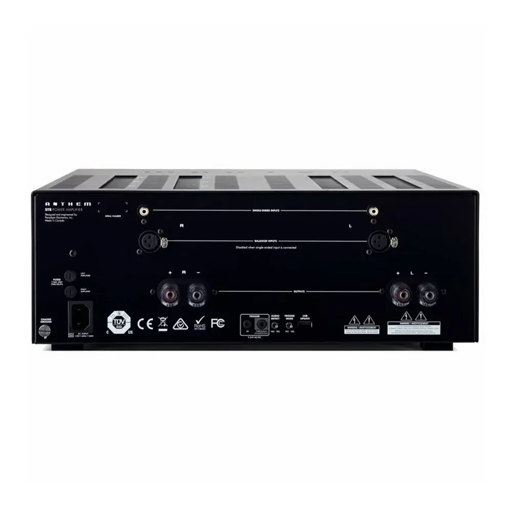 В усилителе Anthem STR Power Amplifier используются два мощных тороидальных трансформатора, обеспечивающие стопроцентную архитектуру двойного моно. Усилитель поддерживает мягкое включение (четыре варианта включения и выключения питания), при этом на борту нет плавких предохранителей. За состояние системы отвечает фирменная технология Advanced Load Monitoring (ALM), которая без внесения искажений контролирует внутреннюю температуру, ток и напряжение. На передней панели – дисплей, индицирующий показатели мощности, состояния и обеспечивающий простую настройку и навигацию в системе.