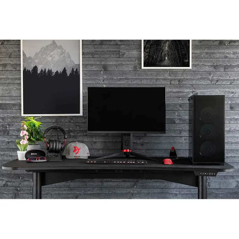 Arozzi Arena Moto — это большой игровой стол с функцией регулировки высоты, кнопочной панелью ее управления, большим ковриком для мышки, который покрывает всю поверхность столешницы, и стильным дизайном.