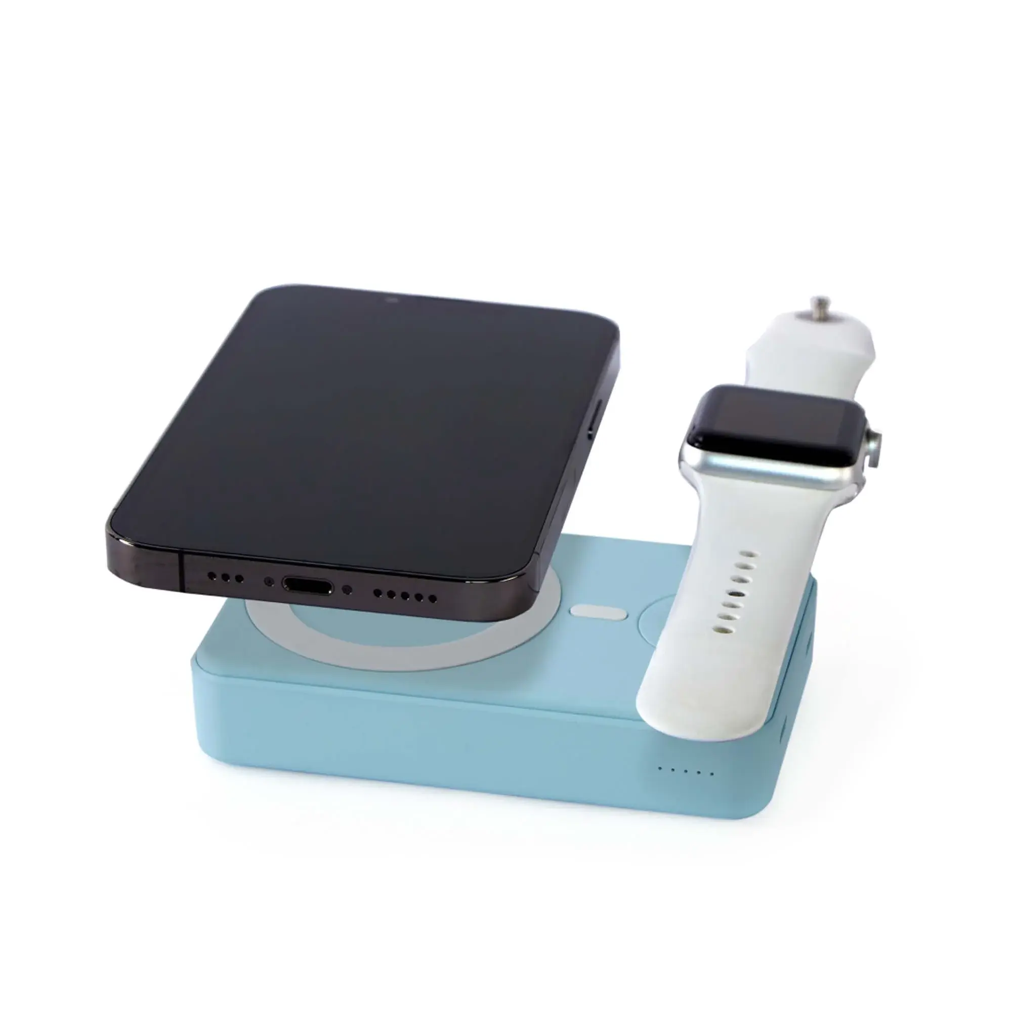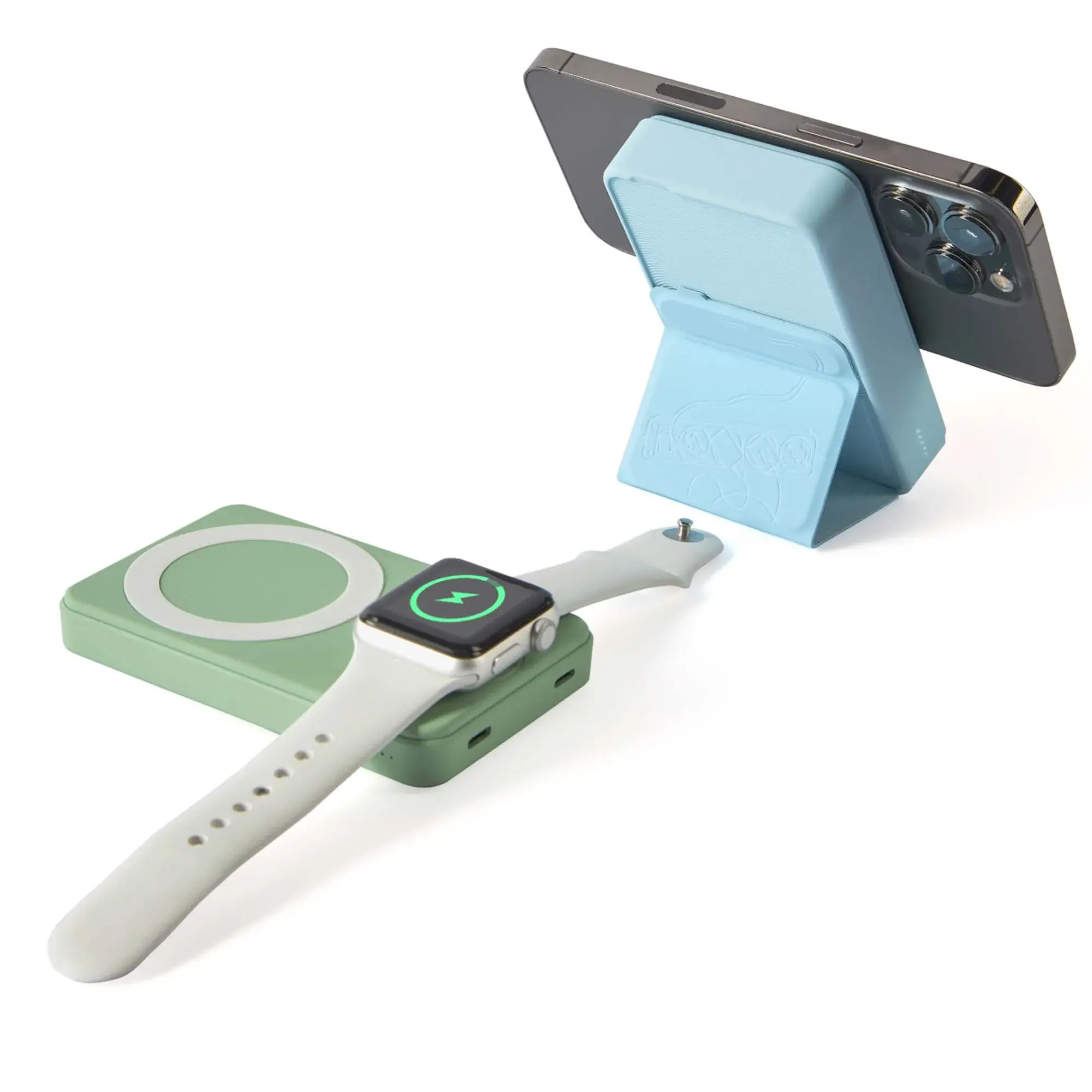 Пауэрбанкус» — незаменимая зарядка, которая позволяет заряжать сразу два устройства: мобилу и часы. Работает и как беспроводная магнитная, и через шнур Type-C.