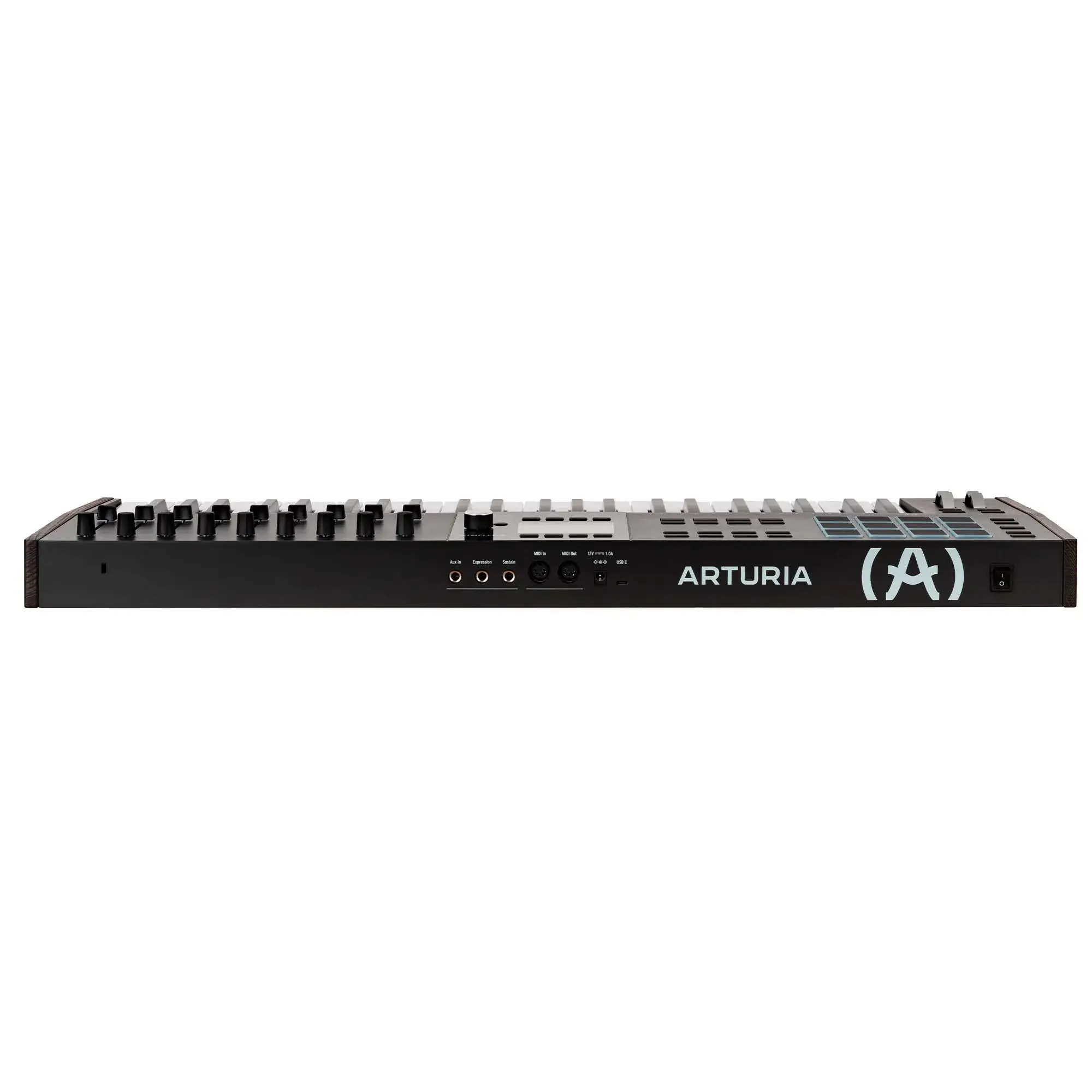 разъемы под педали экспрессии и сустейна, четыре выхода и один вход CV с управлением гейтом, питчем и модуляцией, порты MIDI и USB и 3 дополнительных входа Aux;