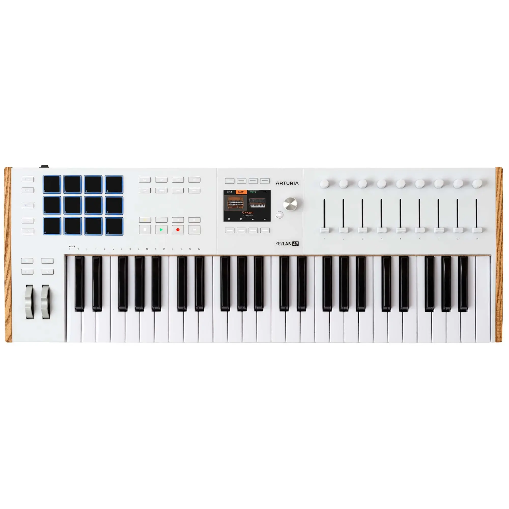 Arturia KeyLab 49 MK3 – универсальная MIDI-клавиатура второго поколения. Это отличное решение для студии и концертных выступлений, обеспечивающее высокий уровень контроля над музыкой и программным обеспечением. Возможна работа в режимах Analog Lab, DAW и User. Первый предназначен для использования с этим ПО, второй – под аудио- и MIDI-секвенсоры и третий позволяет настроить фейдеры, энкодеры и пэды «под себя».