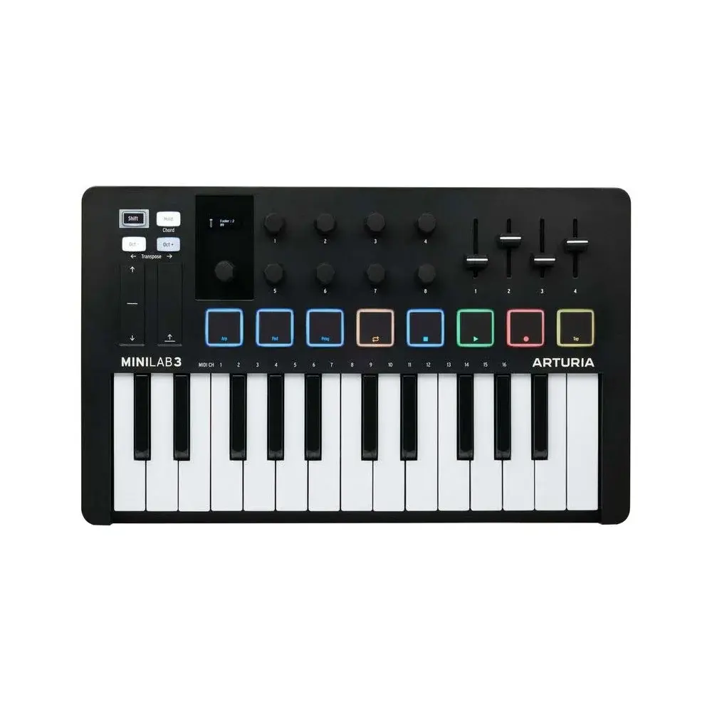 Arturia MiniLab 3 — это MIDI-клавиатура и пэд-контроллер в компактном корпусе, который позволяет создавать музыку сразу после подключения. Пользовательские сценарии обеспечивают интеграцию с основными DAW и полную совместимость с библиотекой программных инструментов Arturia. Соединение USB-C позволяет подключать MIDI-клавиатуру к компьютеру или iPad.