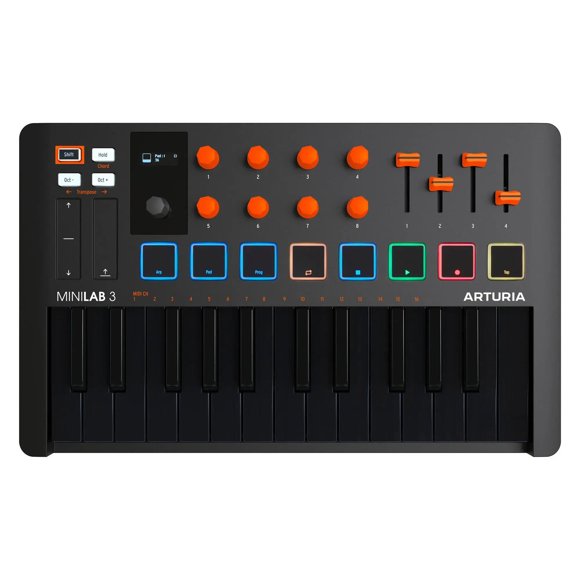 Arturia MiniLab 3 — это MIDI-клавиатура и пэд-контроллер в компактном корпусе, который позволяет создавать музыку сразу после подключения. Пользовательские сценарии обеспечивают интеграцию с основными DAW и полную совместимость с библиотекой программных инструментов Arturia. Соединение USB-C позволяет подключать MIDI-клавиатуру к компьютеру или iPad.