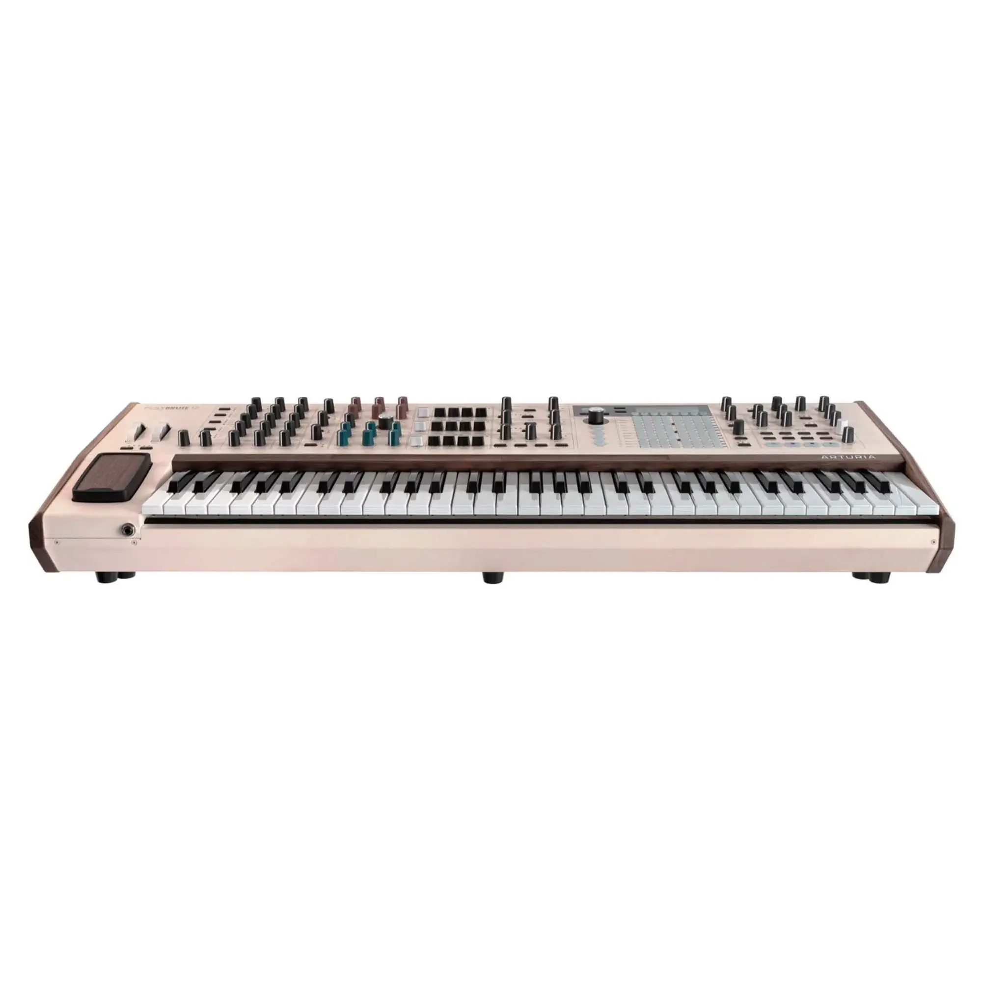 Arturia Polybrute 12 - полифонический аналоговый синтезатор. Синтезатор оснащен 61-клавишной чувствительной к скорости клавиатурой с эффектом послекасания. Модель имеет большое количество элементов управления, включая OLED-дисплей, а также ленточный контроллер и уникальный трехмерный контроллер Morphee XYZ, выполненный из древесины черного ореха.