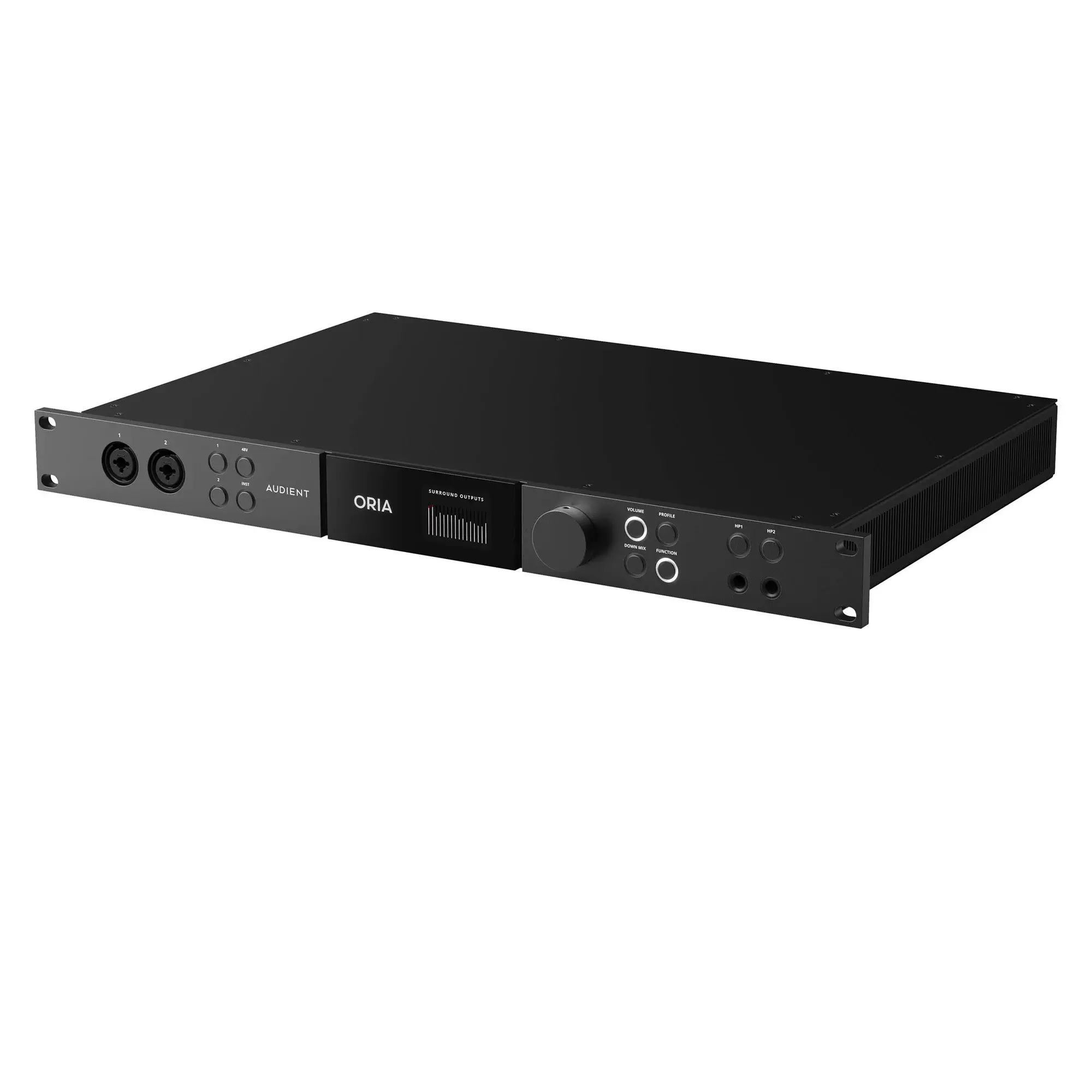 Audient ORIA объединяет аудиоинтерфейс и мониторный контроллер в одном корпусе и предназначено для установки в рэковую стойку.