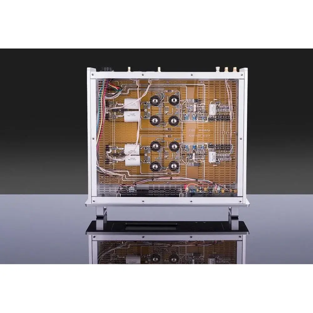 Схема «двойное моно» работает в чистом классе А и обладает нулевой обратной связью. Секция предварительного усиления использует 8 электронных ламп 6H30, по 4 на каждый канал. Вместо того, чтобы использовать повышающий трансформатор в выходном каскаде применены специальные FET-транзисторы с высоким коэффициентом усиления и низким уровнем шумов.