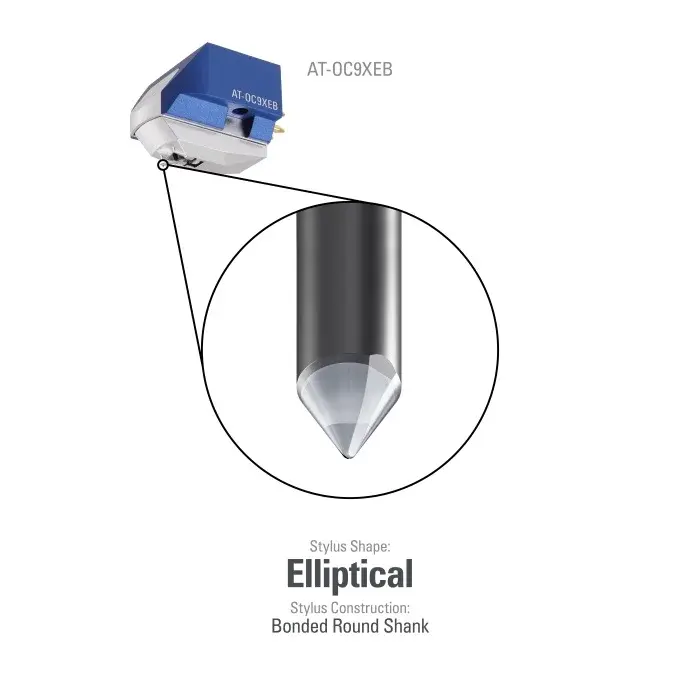 Картридж с двойной подвижной катушкой AT-OC9XEB со скрепленным эллиптическим стилусом (Bonded Elliptical), предназначен для обеспечения превосходного разделения каналов. Катушки Pure Copper от Ohno Continuous Casting (PCOCC) обеспечивают чистую передачу звука и выровнены в виде обратной V-образной формы, чтобы оказывать меньшее давление на стилус, тем самым сводя к минимуму искажения. Качество звука дополнительно улучшается благодаря жесткому алюминиевому корпусу, который уменьшает резонанс, неодимовому магниту и вилку из чистого железа, которые увеличивают магнитную энергию, и приклеенному эллиптическому стилусу на алюминиевом кантилевере, который точно отслеживает канавку записи. Резьбовые отверстия в корпусе AT-OC9X позволяют его крепить к головке или встроенному тонарму всего двумя винтами; гайки и болты не нужны.