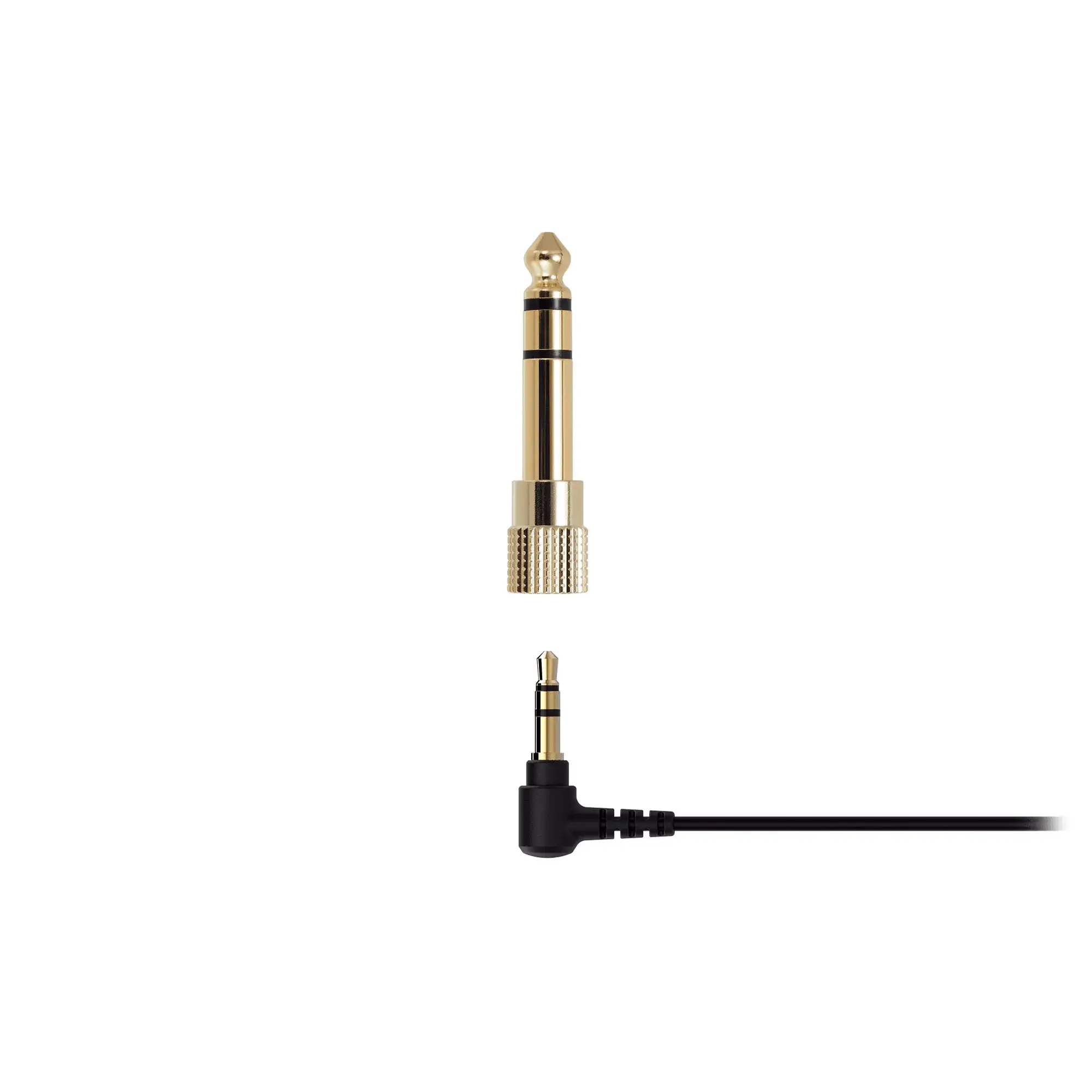 Особенностью конструкции Audio-Technica ATH-E50 является съемным соединительный кабель, который подключается к каждому вкладышу с помощью миниатюрных разъемов A2DC. Они обеспечивают надежную механическую стыковку и передачу сигнала практически без потерь благодаря позолоченной контактной поверхности. Для подсоединения к источнику сигнала предназначен стандартный угловой разъем mini-jack, 3,5 мм, а в комплекте с ATH-E50 поставляется переходник диаметром 6,3 мм для подключения к профессиональной аудиотехнике. Участки соединителя около вкладышей могут быть изогнуты в виде заушин (благодаря тому, что здесь кабель обладает «эффектом памяти») – при такой посадке Audio-Technica ATH-E50 не выпадут даже в том случае, если слушатель будет активно двигать головой.