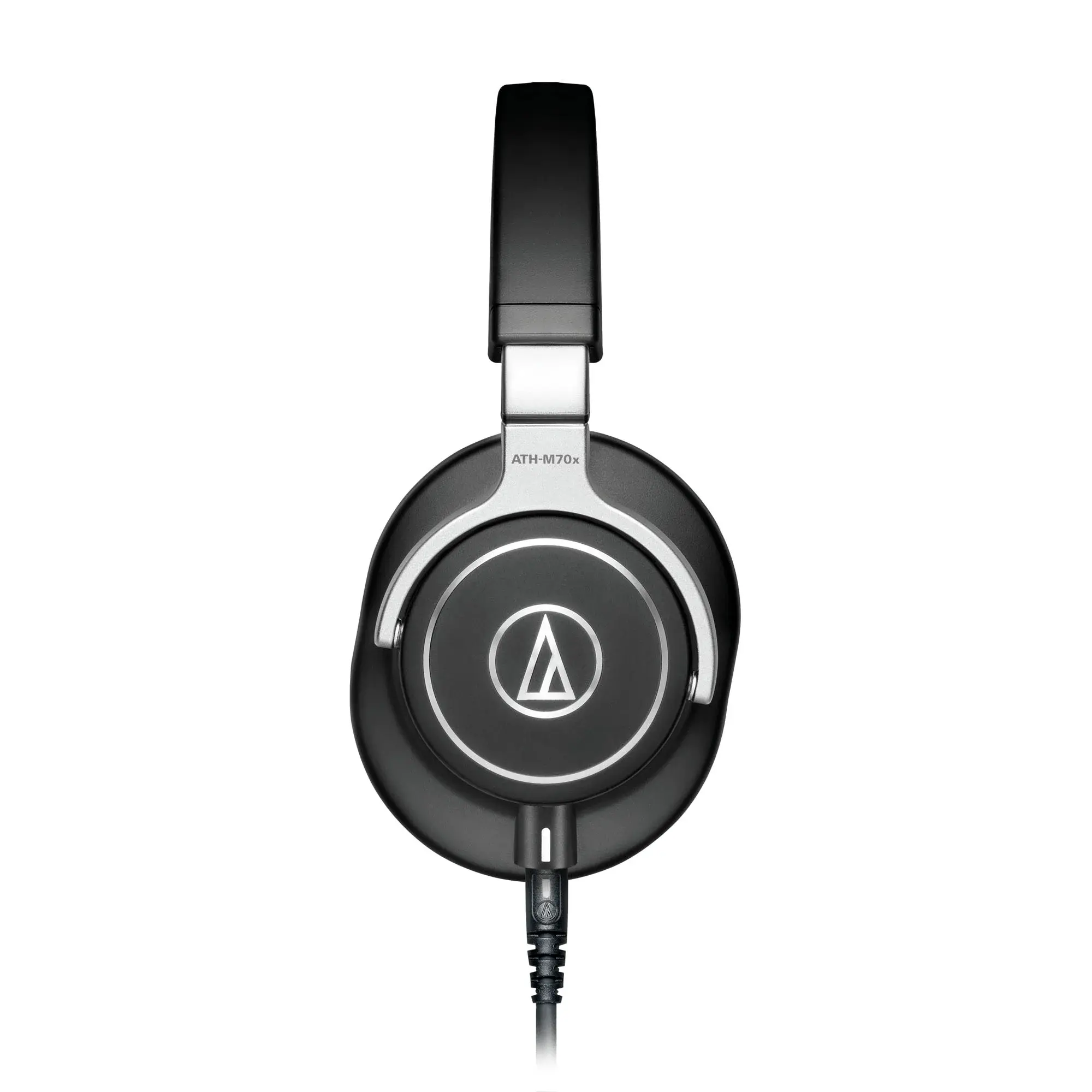 Полноразмерные закрытые наушники-мониторы Audio-Technica ATH-M70x занимают самую верхнюю позицию в профессиональной M-серии. Модель обладает крупными 45 мм излучателями, оснащенными мощной неодимовой магнитной системой и имеет звуковые катушки, которые намотаны алюминиевым проводом, плакированным медью (CCAW). Динамики дают возможность получить точное, аккуратное и хорошо сбалансированное звучание в широком частотном диапазоне от 5 до 40 000 Гц.