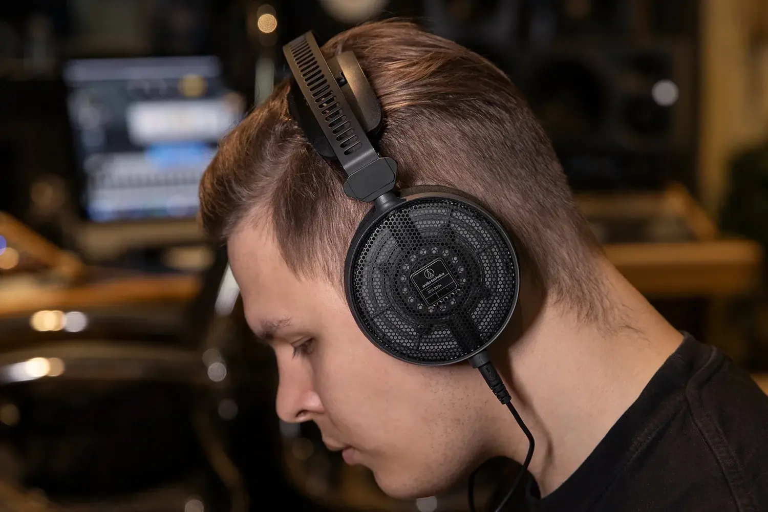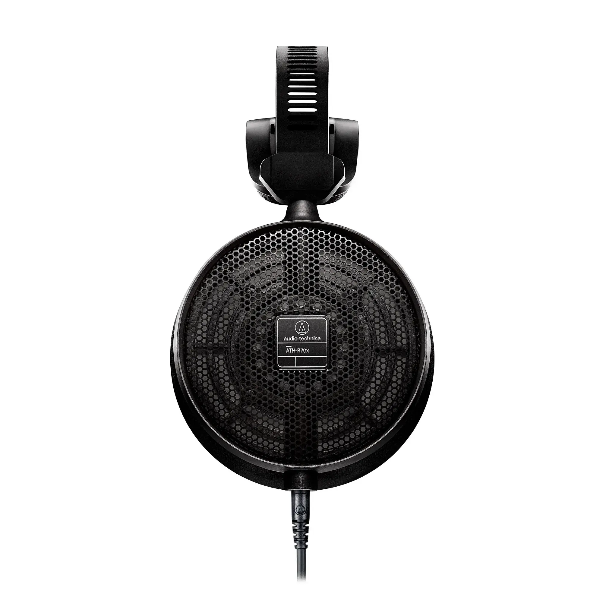 Audio-Technica ATH-R70X представляют собой первые открытые наушники компании, предназначенные для профессионального пользования. Наряду с закрытыми наушниками ATH-M70X данная модель считается флагманом профессиональной серии. В качестве излучателей здесь задействованы 45 мм динамические драйверы, оснащенные специальными высокоэффективными магнитами. В итоге удается минимизировать искажения и обеспечить широкий частотный диапазон с верхним пределом в 40 кГц. Чашки изготовлены из композитного материала на основе углеволокна, который способствует усилению жесткости всей конструкции. Внешняя часть чашек прикрыта алюминиевой сеткой с перфорацией в виде сотовых отверстий. Благодаря этому обеспечивается естественный звук с широкой сценой. Наушники Audio-Technica ATH-R70X имеют упругое металлическое оголовье и традиционно используют механизм 3D Wing Support, состоящий из двух «крыльев» с мягкими демпфирующими накладками, которые могут перемещаться в трех плоскостях. Такая конструкция обеспечивает автоматическую регулировку в соответствии с требуемым размером, однако в данном случае механизм прошел ряд изменений и обновлений, что позволило повысить его эффективность и сделать прослушивание еще более комфортным. Мягкие тканевые амбушюры позволяют находиться в наушниках длительный период времени без ощущения усталости. Следует отметить такие важные для профессионалов свойства данных наушников, как относительно легкий вес (210 грамм без кабеля) по сравнению с другими моделями и прочная надежная конструкция. Модель оснащена двухсторонним съемным кабелем, который крепится к чашкам посредством мини-штекеров и защелкивающихся механизмов. Для подключения к источнику служит разъем 3.5 мм. Наушники обладают чувствительностью в 99 дБ, имеют импеданс в 470 Ом. Еще одно неоспоримое преимущество данной модели — это ровная АЧХ и широкий частотный диапазон от 5 Гц до 40 кГц, что важно при воспроизведении аудиоформатов высокого разрешения. Наушники Audio-Technica ATH-R70X можно использовать не только для работы в студии (мастеринг, сведение и т.п.), но и для обычного прослушивания. Модель отличается точным, натуральным и детальным звучанием с правильным тональным балансом и широкой реалистичной стереопанорамой. Особенности Audio-Technica ATH-R70X: чашки из композитного материала оснащены алюминиевыми сетками; 45 мм излучатели с высокоэффективной магнитной системой; модернизированный механизм 3D Wing Support; съемный двухсторонний кабель; максимальная подводимая мощность: 1000 мВт (1 кГц); кабель: прямой, двухсторонний, съемный, с защелкивающимися разъемами для крепления к чашкам; длина кабеля: 3 м. Комплектация Audio-Technica ATH-R70X: наушники Audio-Technica ATH-R70x; кабель 3.5 мм; переходник на 6.3 мм; мягкий чехол для хранения; документация.