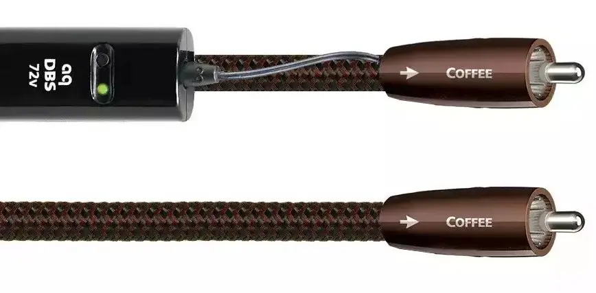 AudioQuest Coffee Coaxial оснащен высококлассными RCA-разъемами, монтаж которых выполняется без использования пайки. Корпуса разъемов выполнены из «красной» меди и имеют серебряное покрытие.