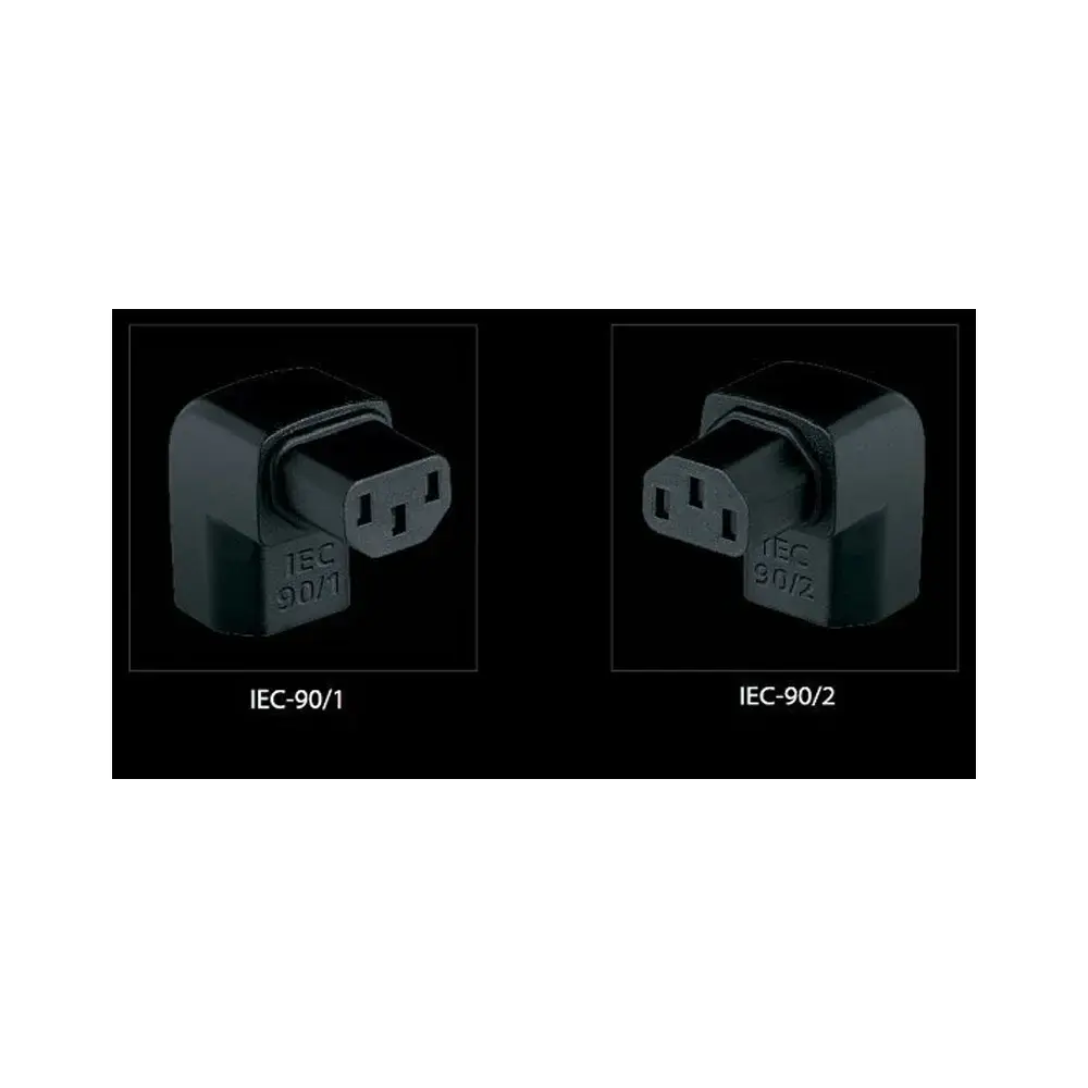 AudioQuest IEC 90/1 - адаптер питания C13 смещение от центральной жилы вверх, угол изгиба (90 градусов) 90/1. IEC 90/1 изогнут в направлении к штырю заземления. Идеально подходит для плотной установки, требующей применения компенсатора натяжения. Не изменяет параметры высококачественных силовых кабелей.