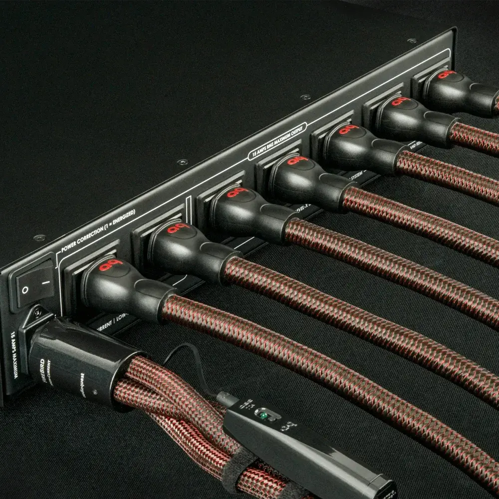 7 розеток: 2 с высокими токами (High-Current); 5 с линейной фильтрацией шумов (Source);