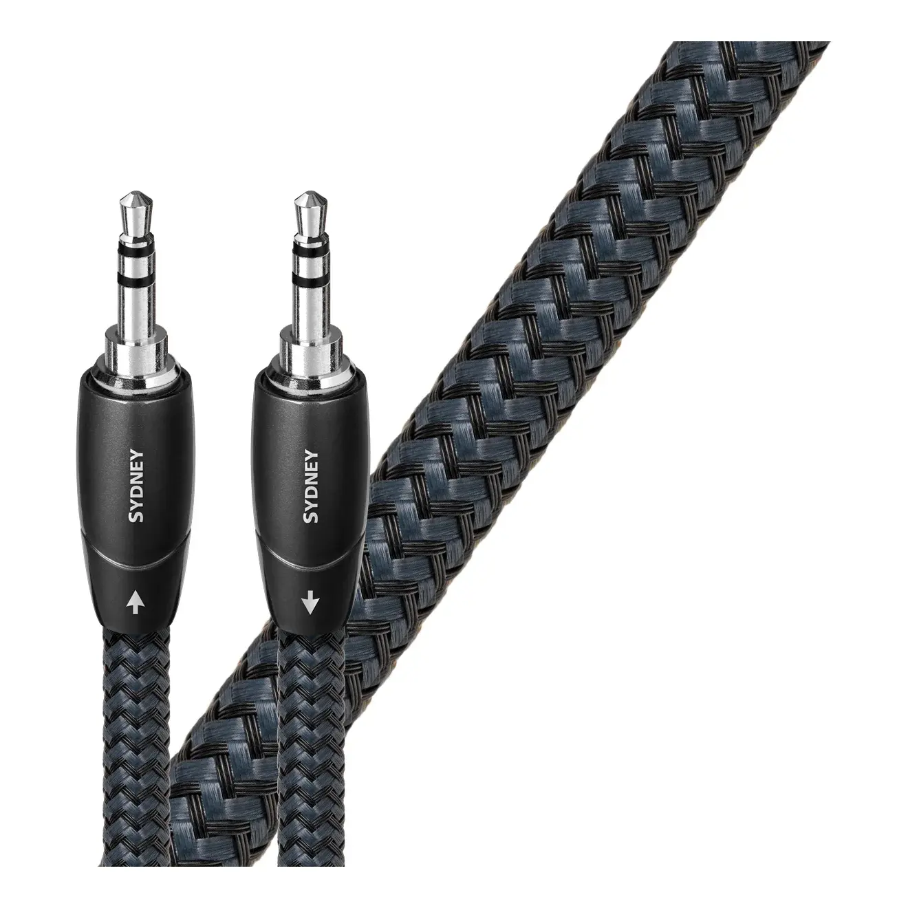 AudioQuest Sydney 3.5M-3.5M - Межблочный аудио кабель с разъемами 3.5 мм (mini-jack) - 3.5 мм (mini-jack), Double-Balanced Asymmetrical конструкция проводников. Проводники из монолитной полированной меди Solid Perfect-Surface Copper +(PSC+), Noise-Dissipation System (NDS), трехслойная система рассеяния помех на основе углерода, плетеный кожух черно темно-серого цвета.