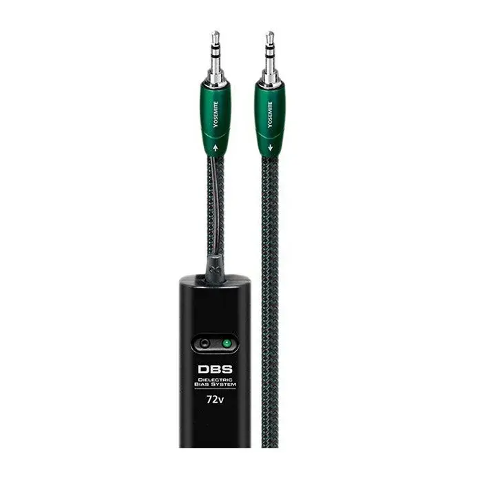 Межблочный аудио кабель с разъемами 3.5 мм (mini-jack) - 3.5 мм (mini-jack), Double-Balanced Asymmetrical конструкция проводников. Проводники из монолитной полированной меди Solid Perfect-Surface Copper +(PSC+), 72 V Dielectric - Bias System (DBS), Noise-Dissipation System (NDS), трехслойная система рассеяния помех на основе углерода, воздушные трубки на из фторполимера, плетеный кожух черно-зеленого цвета.