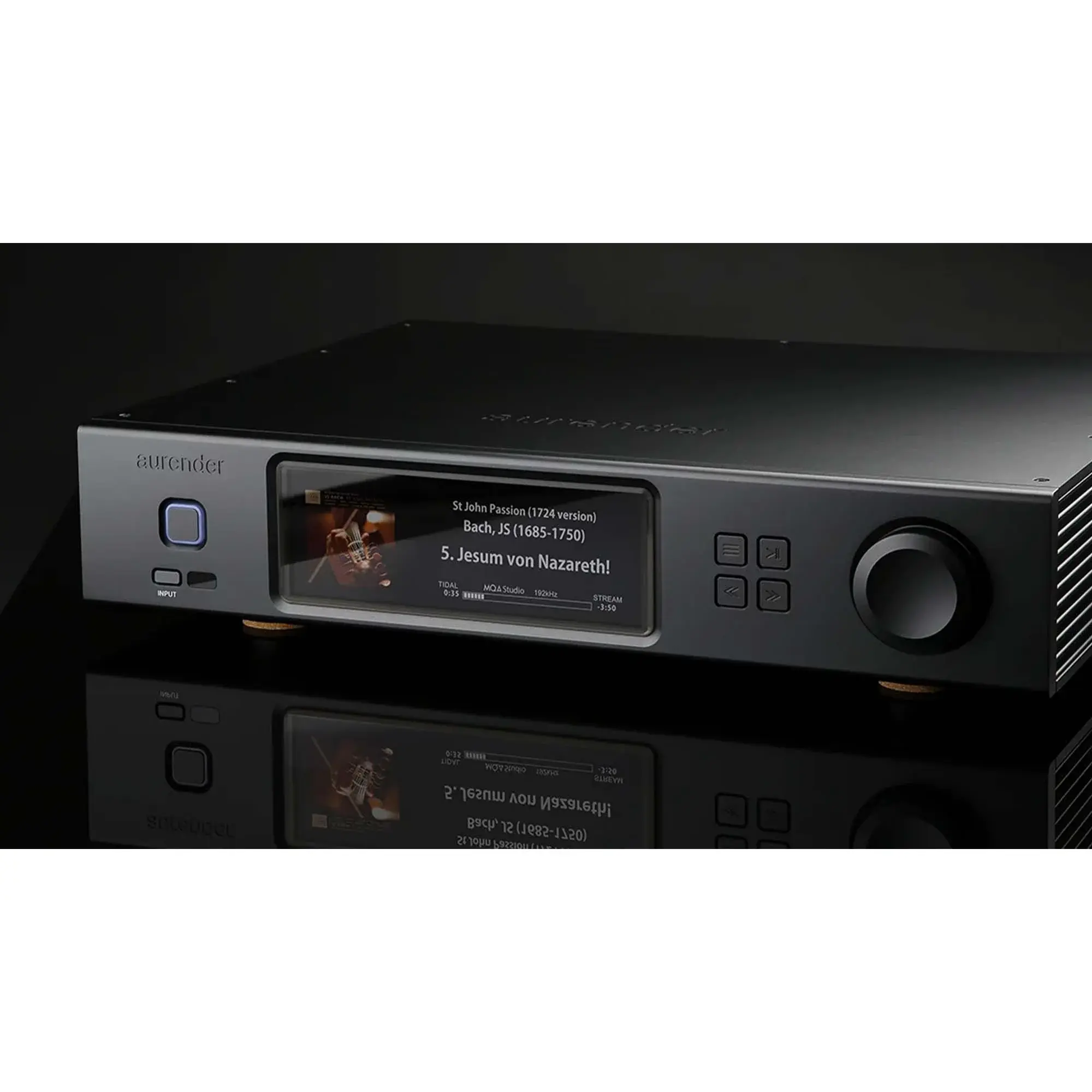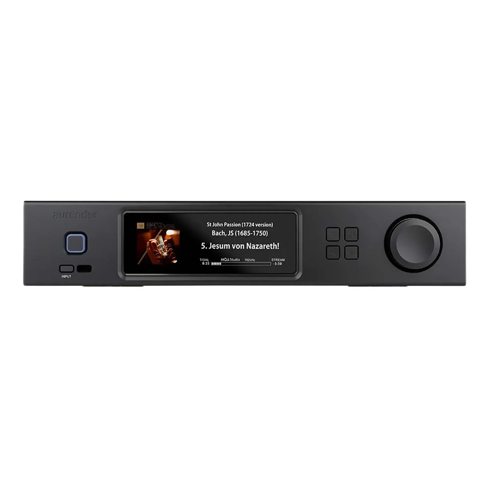 В A15 используется популярные микросхемы ЦАП AKM4490 в конфигурации «двойное моно» с раздельными линейными источниками питания каждого канала. Такое решение обеспечивает наилучшие разделение каналов, динамику и снижение уровня шума. Разработчики Aurender спроектировали входные и выходные цепи таким образом, чтобы максимально раскрыть потенциал микросхемы ЦАП, достигнув новых высот в качестве звучания и его прозрачности. В результате A15 звучит очень собранно и плавно, безрезкости и темноты. Помимо полноценного декодирования MQA, встроенный в A15 ЦАП также работает с файлами PCM до 32 бит/768 кГц и DSD до DSD512.