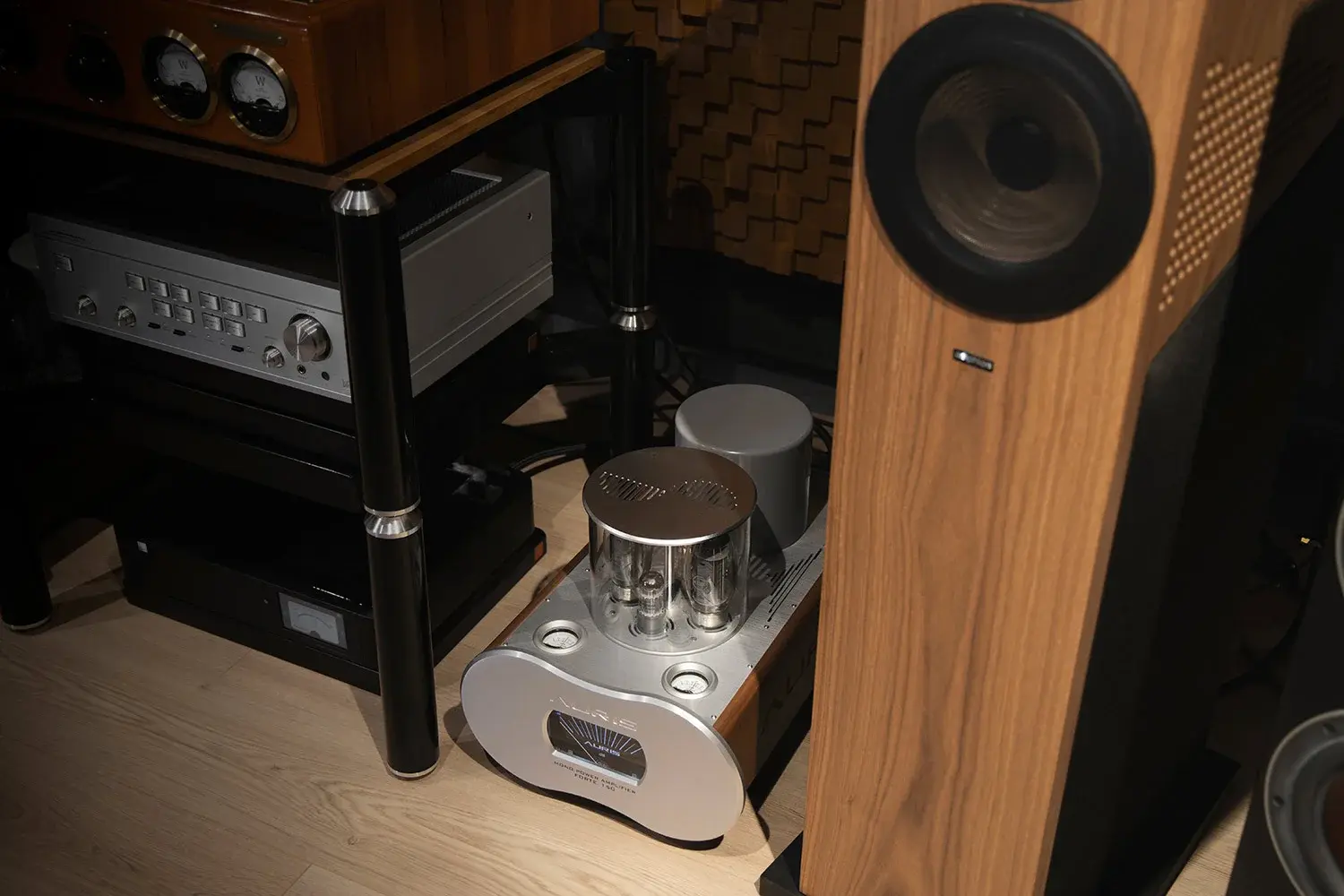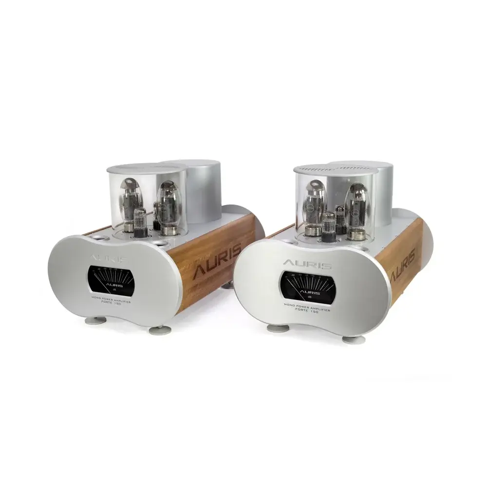 Auris Forte 150 - ламповый усилитель мощности состоящий из двух моноблоков. Число 150 в названии говорит об использовании вакуумных ламп KT 150, которые являются усовершенствованными версиями знаменитых KT 88 и KT 120.