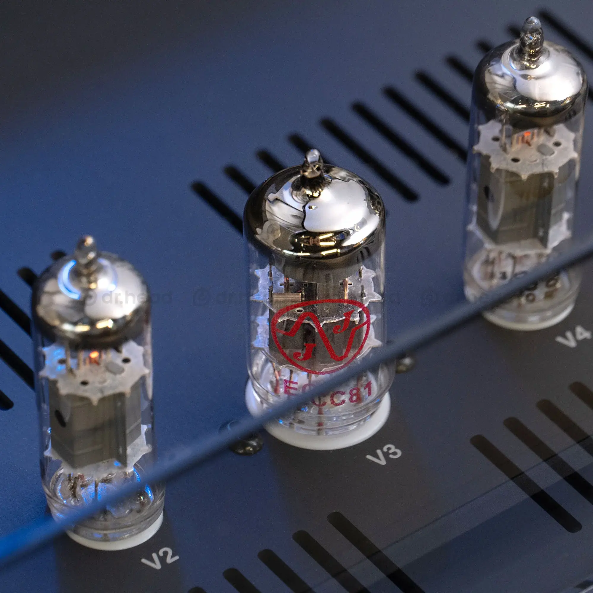 На передней панели, слева направо, расположены переключатель On/Off, селектор входных линий и 4-контактный балансный выход XLR. Посередине находится основная ручка регулировки громкости, а рядом с ней - 6,3-мм односторонний выход для наушников. На правой стороне находится селектор входного сигнала наушников на 50/150/300/600 Ом. На верхней части устройства расположены пять ламп (4 x PL95 и 1 x ECC81), которые находятся по центру конструкции.