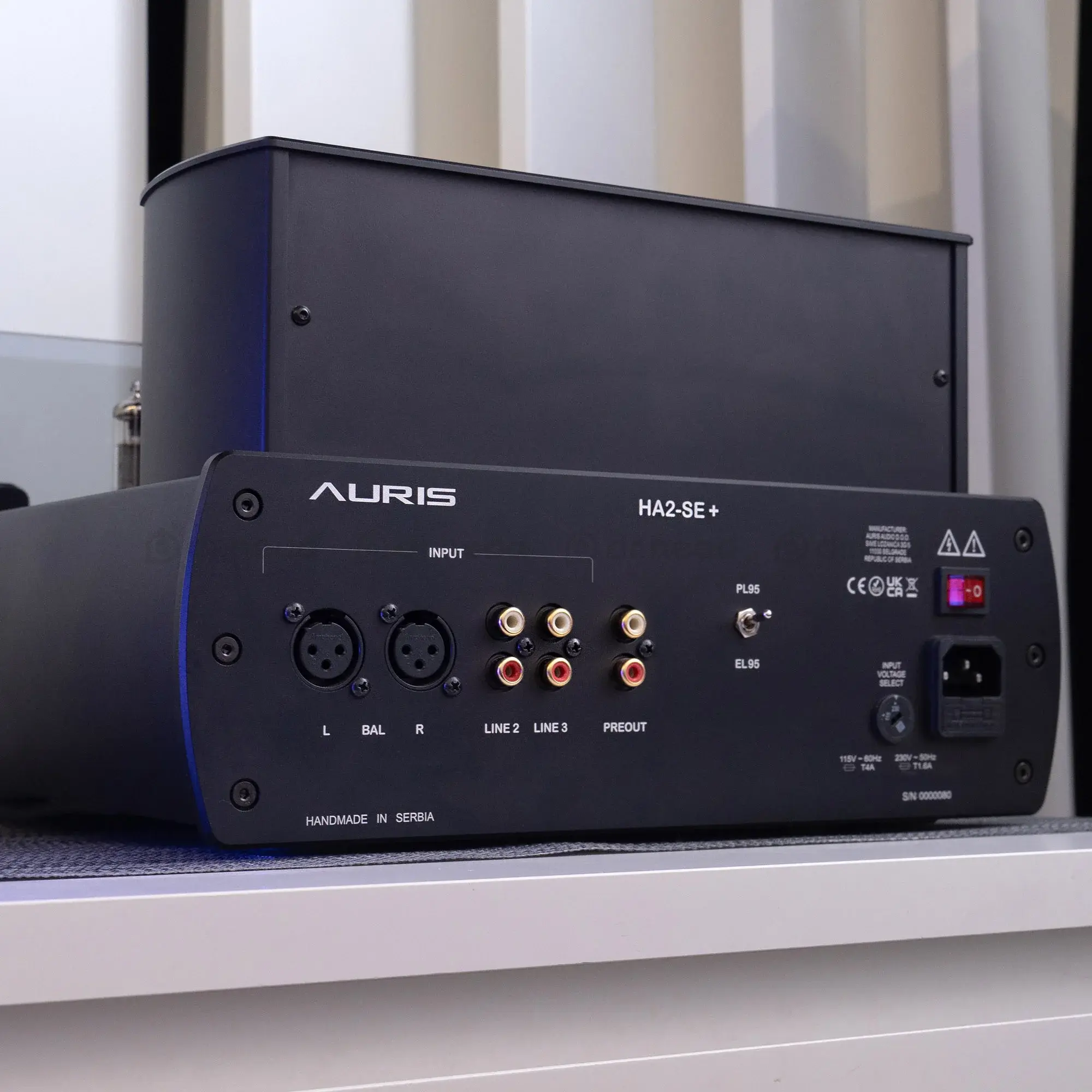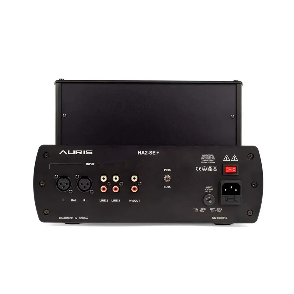 На задней панели устройства слева направо находятся XLR и два RCA входа, а также предварительный выход. В центре находится переключатель Tube EL 95 или PL 95. С правой стороны находится переключатель входного напряжения, вход для шнура питания и переключатель включения/выключения. Чтобы ваши наушники работали в полную силу, Auris Audio разработали HA-2SE+ с переключателем импеданса, который позволяет выбрать 50/150/300/600 Ом в зависимости от типа ваших наушников.