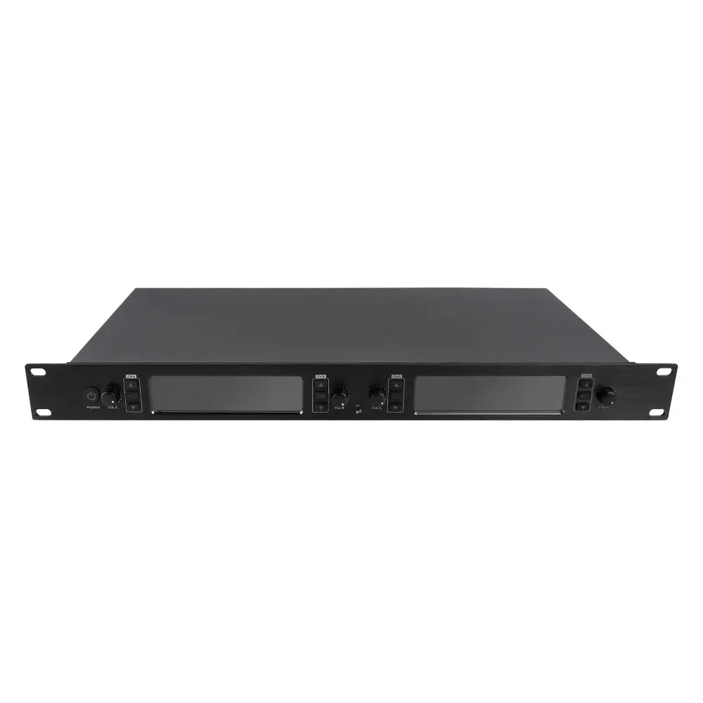 AXELVOX DWS7000HT — высококачественная беспроводная микрофонная система профессионального уровня, состоящая из четырех ручных передатчиков и четырехканального приемника.