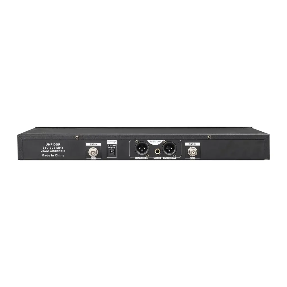 Приемник имеет функцию Quick Scan для выбора лучшего открытого канала частоты, функцию Auto Mute и позволяет отдельно регулировать громкость для каждого канала. Для индикации используются два ЖК-экрана, для программирования – инфракрасные порты. Корпус сделан из стали, сзади расположены разъем Mix на 1/4 дюйма и два XLR-коннектора. Ручные микрофоны оснащены динамическими капсюлями с кардиоидной направленностью. Встроены ЖК-экраны и выключатели.