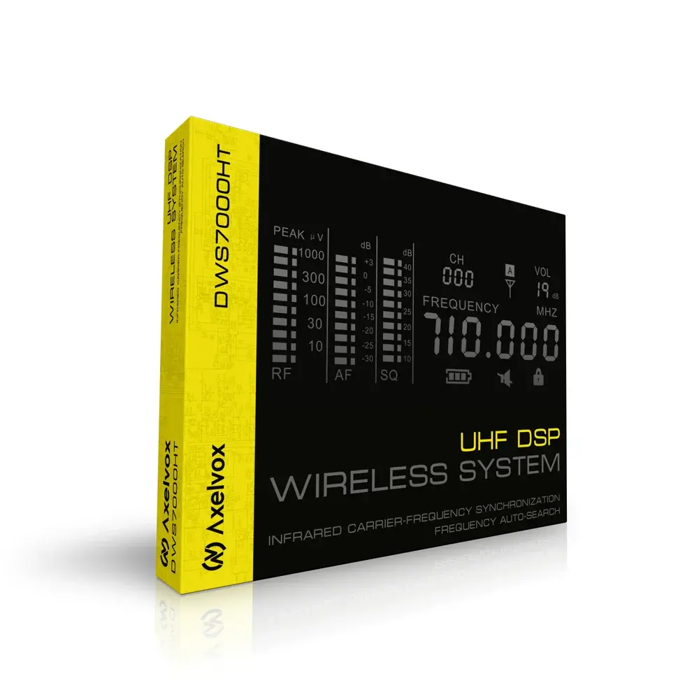AXELVOX DWS7000HT — высококачественная беспроводная микрофонная система профессионального уровня, состоящая из двух ручных передатчиков и двухканального приемника с установкой в рэк.