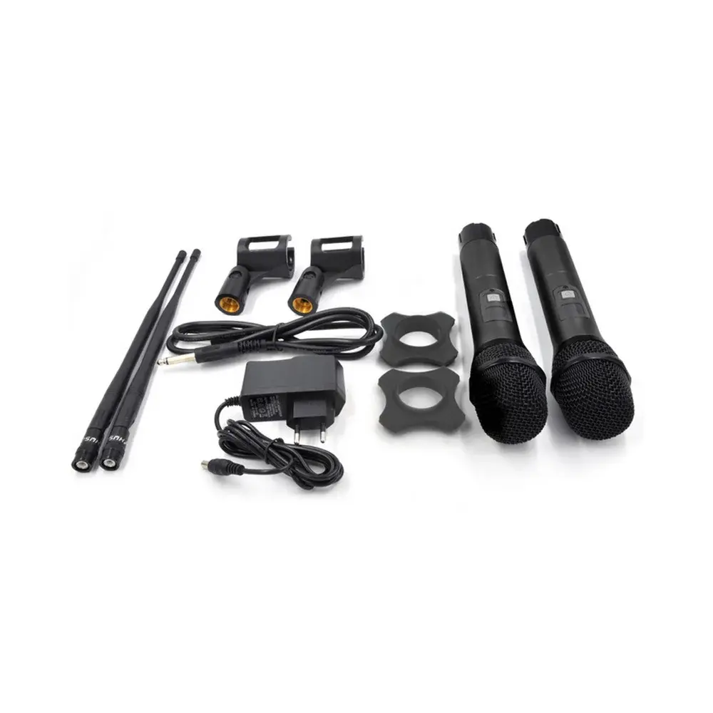 AXELVOX DWS7000HT — высококачественная беспроводная микрофонная система профессионального уровня, состоящая из двух ручных передатчиков и двухканального приемника.