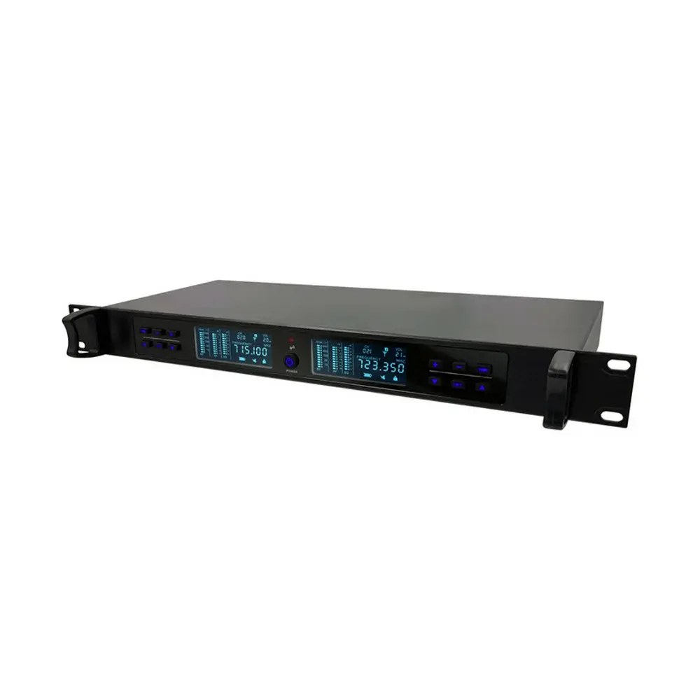 Приемник имеет функцию Quick Scan для выбора лучшего открытого канала частоты, функцию Auto Mute и позволяет отдельно регулировать громкость для каждого канала. Для индикации используются два ЖК-экрана, для программирования – инфракрасные порты. Корпус сделан из стали, сзади расположены разъем Mix на 1/4 дюйма и два XLR-коннектора. Ручные микрофоны оснащены динамическими капсюлями с кардиоидной направленностью. Встроены ЖК-экраны и выключатели.